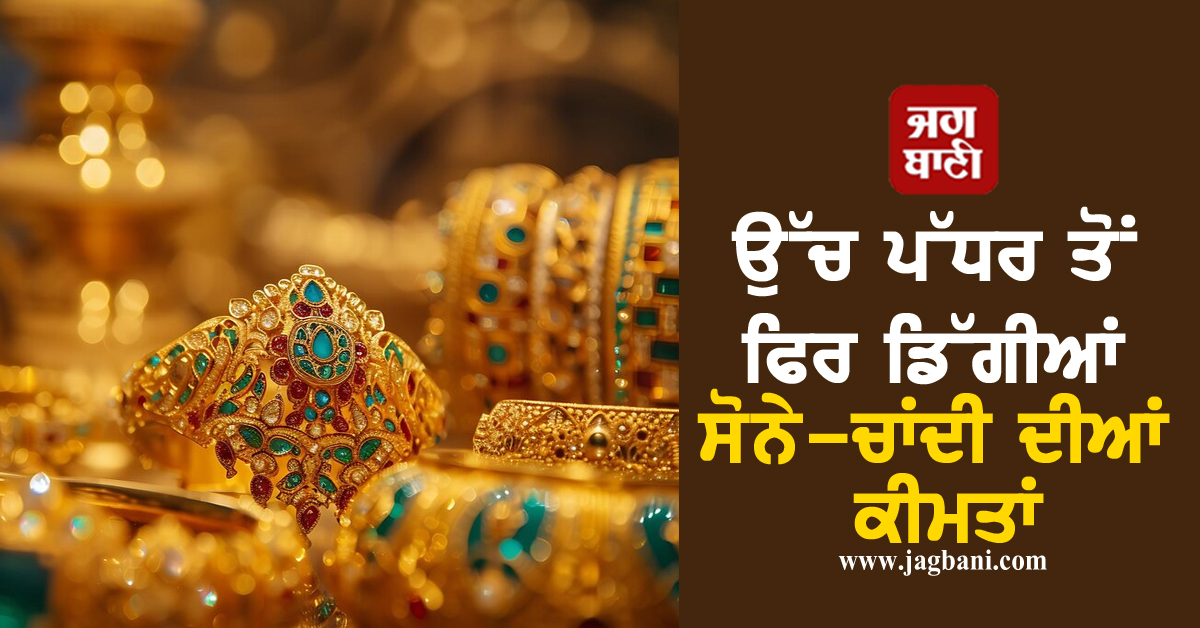 ਉੱਚ ਪੱਧਰ ਤੋਂ ਫਿਰ ਡਿੱਗੀਆਂ ਸੋਨੇ-ਚਾਂਦੀ ਦੀਆਂ ਕੀਮਤਾਂ, ਜਾਣੋ ਕਿੰਨੇ ਹੋਈ 10 ਗ੍ਰਾਮ Gold ਦੇ ਭਾਅ