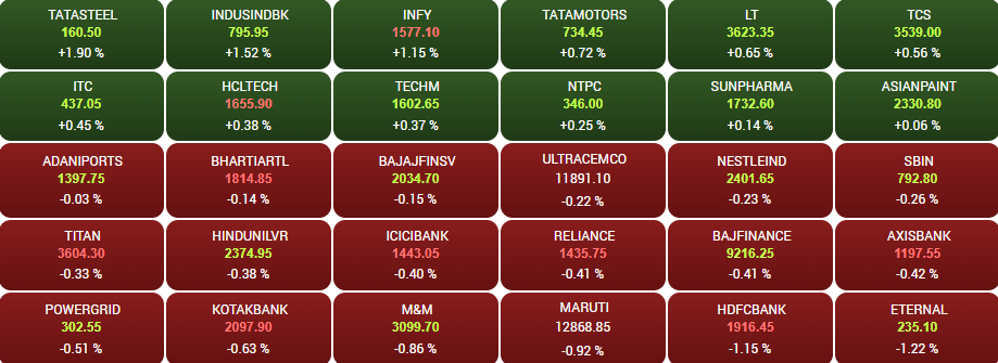 ਮੌਜੂਦਾ ਸਮੇਂ ਸੈਂਸੈਕਸ 192.12 ਅੰਕ ਭਾਵ 0.23 % ਦੀ ਗਿਰਾਵਟ ਨਾਲ 81,867.30 ਦੇ ਪੱਧਰ 'ਤੇ ਕਾਰੋਬਾਰ ਕਰ ਰਿਹਾ ਹੈ। ਸੈਂਸੈਕਸ ਦੇ 12 ਸਟਾਕ ਵਾਧੇ ਨਾਲ ਅਤੇ 30 ਸਟਾਕ ਗਿਰਾਵਟ ਨਾਲ ਕਾਰੋਬਾਰ ਕਰਦੇ ਦੇਖੇ ਜਾ ਰਹੇ ਹਨ।