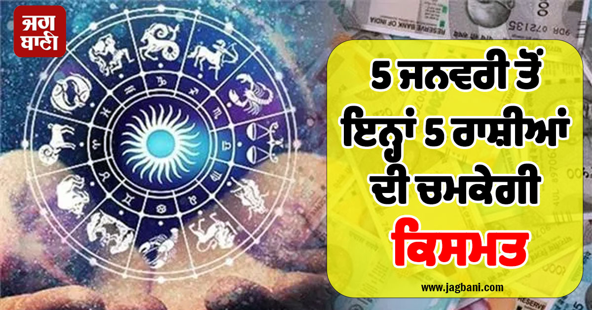5 ਜਨਵਰੀ ਤੋਂ ਇਨ੍ਹਾਂ 5 ਰਾਸ਼ੀਆਂ ਦੀ ਚਮਕੇਗੀ ਕਿਸਮਤ, ਹੋਵੇਗਾ ਪੈਸਾ ਹੀ ਪੈਸਾ