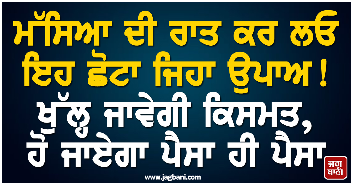 ਮੱਸਿਆ ਦੀ ਰਾਤ ਕਰ ਲਓ ਇਹ ਛੋਟਾ ਜਿਹਾ ਉਪਾਅ ! ਖੁੱਲ੍ਹ ਜਾਵੇਗੀ ਕਿਸਮਤ, ਹੋ ਜਾਏਗਾ ਪੈਸਾ ਹੀ ਪੈਸਾ