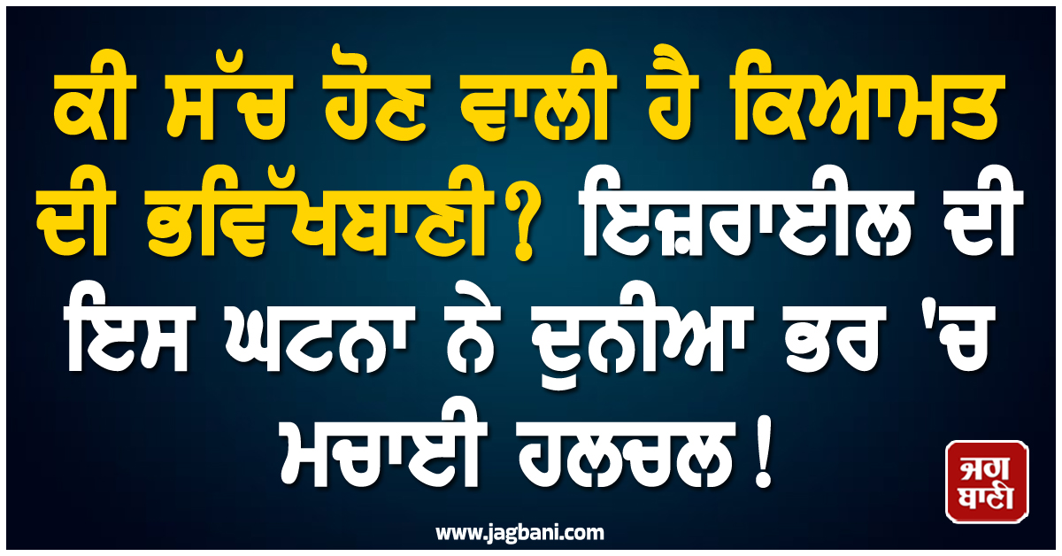 ਕੀ ਸੱਚ ਹੋਣ ਵਾਲੀ ਹੈ ਕਿਆਮਤ ਦੀ ਭਵਿੱਖਬਾਣੀ? ਇਜ਼ਰਾਈਲ ਦੀ ਇਸ ਘਟਨਾ ਨੇ ਦੁਨੀਆ ਭਰ ''ਚ ਮਚਾਈ ਹਲਚਲ!