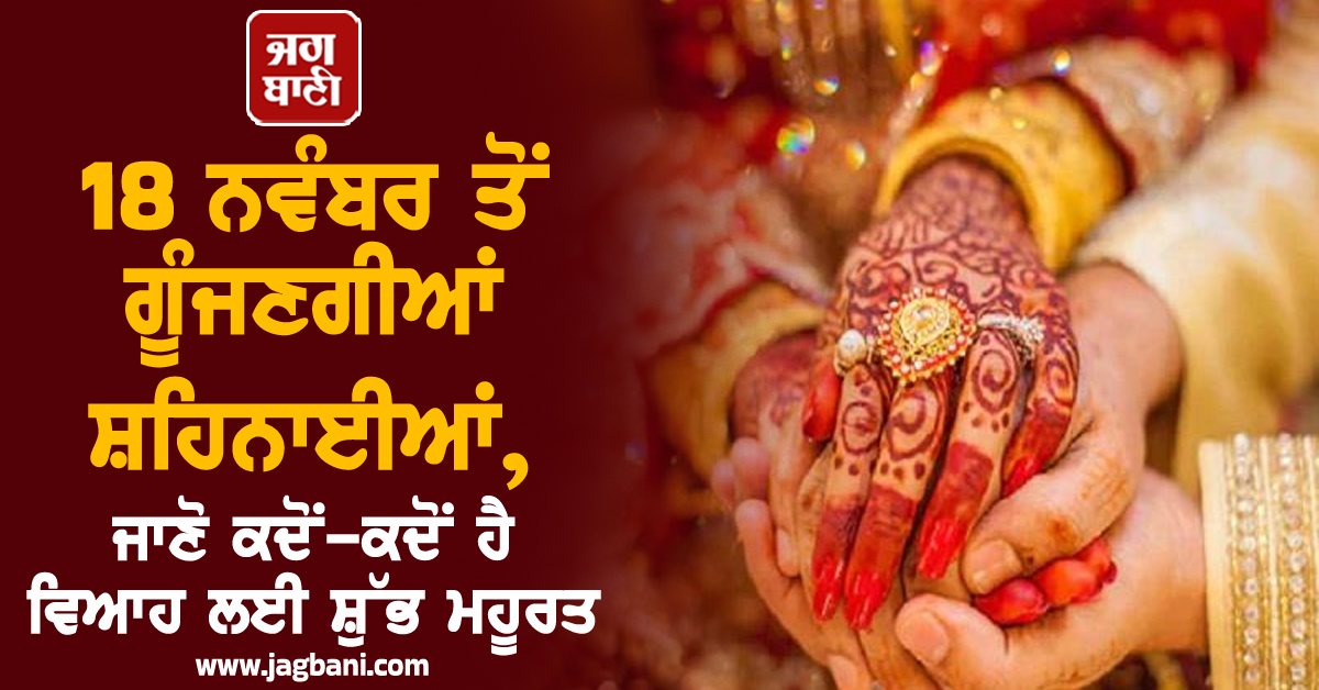 18 ਨਵੰਬਰ ਤੋਂ ਗੂੰਜਣਗੀਆਂ ਸ਼ਹਿਨਾਈਆਂ, ਜਾਣੋ ਕਦੋਂ-ਕਦੋਂ ਹੈ ਵਿਆਹ ਲਈ ਸ਼ੁੱਭ ਮਹੂਰਤ