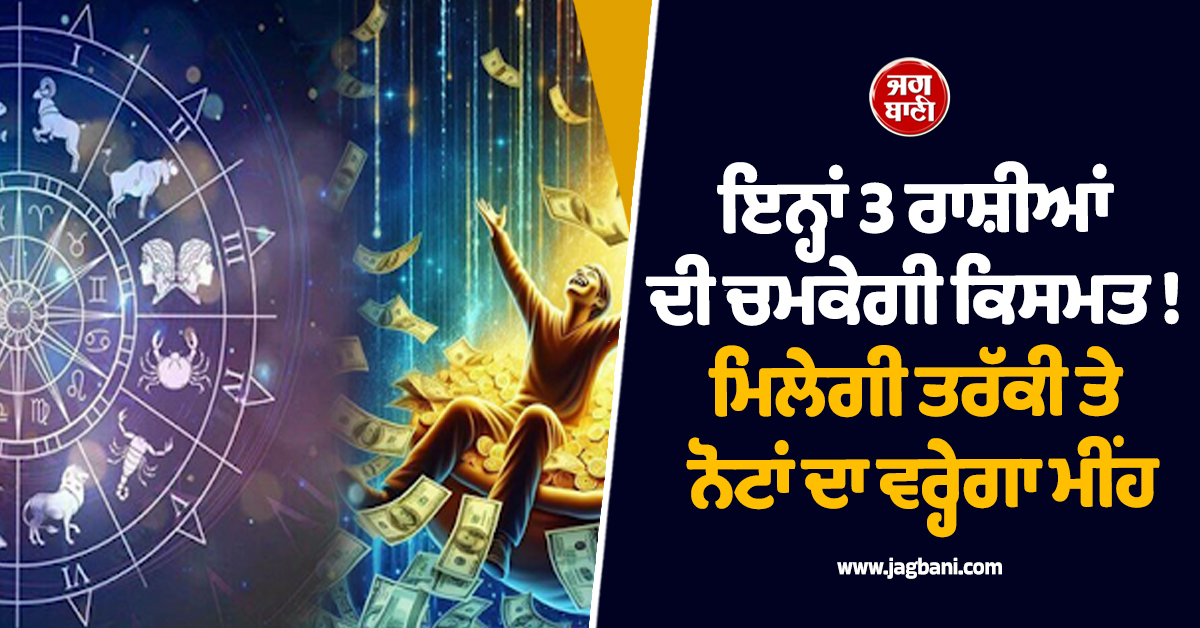 ਇਨ੍ਹਾਂ 3 ਰਾਸ਼ੀਆਂ ਦੀ ਚਮਕੇਗੀ ਕਿਸਮਤ ! ਮਿਲੇਗੀ ਤਰੱਕੀ ਤੇ ਨੋਟਾਂ ਦਾ ਵਰ੍ਹੇਗਾ ਮੀਂਹ