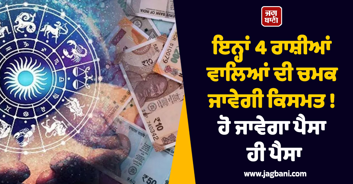 ਇਨ੍ਹਾਂ 4 ਰਾਸ਼ੀਆਂ ਵਾਲਿਆਂ ਦੀ ਚਮਕ ਜਾਵੇਗੀ ਕਿਸਮਤ ! ਹੋ ਜਾਵੇਗਾ ਪੈਸਾ ਹੀ ਪੈਸਾ