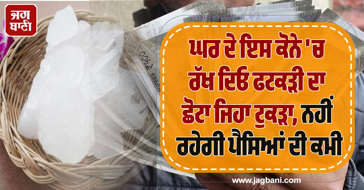 Vastu Tips: ਘਰ ਦੇ ਇਸ ਕੋਨੇ ''ਚ ਰੱਖ ਦਿਓ ਫਟਕੜੀ ਦਾ ਛੋਟਾ ਜਿਹਾ ਟੁਕੜਾ, ਨਹੀਂ ਰਹੇਗੀ ਪੈਸਿਆਂ ਦੀ ਕਮੀ