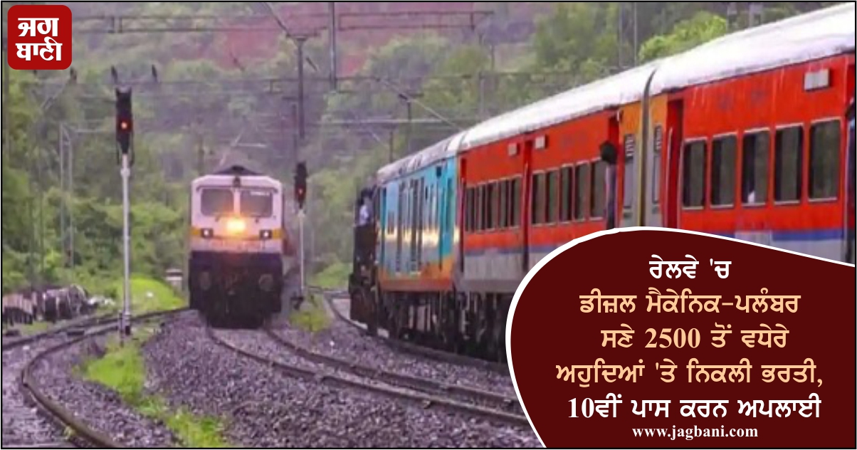 ਰੇਲਵੇ 'ਚ ਡੀਜ਼ਲ ਮੈਕੇਨਿਕ-ਪਲੰਬਰ ਸਣੇ 2500 ਤੋਂ ਵਧੇਰੇ ਅਹੁਦਿਆਂ 'ਤੇ ਨਿਕਲੀ ਭਰਤੀ, 10ਵੀਂ ਪਾਸ ਕਰਨ ਅਪਲਾਈ