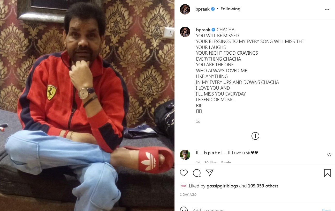 ਚੰਡੀਗੜ੍ਹ (ਬਿਊਰੋ) - ਪੰਜਾਬੀ ਇੰਡਸਟਰੀ ਦੇ ਮਸ਼ਹੂਰ ਸੰਗੀਤਕਾਰ ਸੁਰਿੰਦਰ ਬਚਨ, ਜਿਨ੍ਹਾਂ ਦਾ ਬੀਤੇ ਦੋ ਦਿਨ ਪਹਿਲਾਂ ਦਿਹਾਂਤ ਹੋ ਗਿਆ ਸੀ। ਉਨ੍ਹਾਂ ਦੀ 'ਰਸਮ ਪੱਗੜੀ' 3 ਦਸੰਬਰ ਯਾਨੀਕਿ ਅੱਜ ਸ਼ੁੱਕਰਵਾਰ ਨੂੰ ਲਕਸ਼ਮੀ ਨਰਾਇਣ ਮੰਦਿਰ, ਸੈਕਟਰ 20 -ਸੀ ਚੰਡੀਗੜ੍ਹ 'ਚ ਦੁਪਹਿਰ 1 ਤੋਂ 2 ਵਜੇ ਤੱਕ ਪਵੇਗਾ। ਸੁਰਿੰਦਰ ਬਚਨ ਦੇ ਭਤੀਜੇ ਅਤੇ ਪੰਜਾਬੀ ਇੰਡਸਟਰੀ ਦੇ ਮਸ਼ਹੂਰ ਸੰਗੀਤਕਾਰ ਅਤੇ ਗਾਇਕ ਬੀ ਪਰਾਕ ਨੇ ਵੀ ਆਪਣੇ ਚਾਚੇ ਦੇ ਦਿਹਾਂਤ 'ਤੇ ਦੁੱਖ ਜਤਾਉਂਦੇ ਹੋਏ ਆਪਣੇ ਇੰਸਟਾਗ੍ਰਾਮ ਅਕਾਊਂਟ 'ਤੇ ਬਹੁਤ ਹੀ ਭਾਵੁਕ ਪੋਸਟ ਸਾਂਝੀ ਕੀਤੀ ਹੈ। ਇਸ ਪੋਸਟ 'ਚ ਉਨ੍ਹਾਂ ਨੇ ਲਿਖਿਆ ਕਿ ''ਚਾਚਾ ਜੀ ਤੁਸੀਂ ਬਹੁਤ ਯਾਦ ਆਓਗੇ। ਮੇਰੇ ਹਰ ਗੀਤ ਨੂੰ ਤੁਹਾਡਾ ਆਸ਼ੀਰਵਾਦ ਯਾਦ ਰਹੇਗਾ। ਤੁਹਾਡੇ ਹਾਸੇ ਤੁਹਾਡੀ ਰਾਤ ਦੇ ਭੋਜਨ ਦੀ ਲਾਲਸਾ। ਸਭ ਕੁਝ ਚਾਚਾ ਜੀ ਤੁਸੀਂ ਇੱਕ ਹੋ, ਹਮੇਸ਼ਾ ਮੈਨੂੰ ਪਿਆਰ ਕਰਦਾ ਹੈ। ਮੇਰੇ ਹਰ ਉਤਰਾਅ ਚੜਾਅ 'ਚ ਮੈਂ ਤੁਹਾਨੂੰ ਪਿਆਰ ਕਰਦਾ ਹਾਂ ਅਤੇ ਤੁਹਾਨੂੰ ਰੋਜ਼ ਯਾਦ ਕਰਾਂਗਾ। ਸੰਗੀਤ ਦੇ ਲੈਜੇਂਡ।''