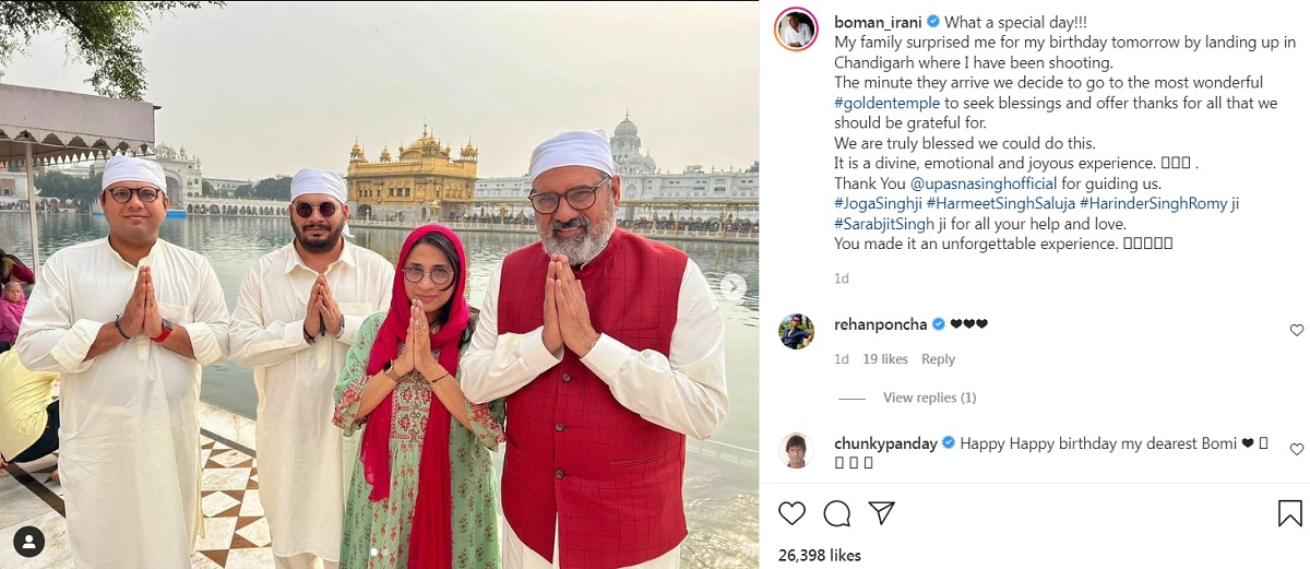 ਦੱਸ ਦਈਏ ਕਿ ਬੋਮਨ ਈਰਾਨੀ ਦਾ ਕਹਿਣਾ ਹੈ ਕਿ ਇਸ ਤੋਂ ਪਹਿਲਾਂ ਵੀ ਉਹ ਸੱਚਖੰਡ ਸ੍ਰੀ ਹਰਿਮੰਦਰ ਸਾਹਿਬ ਦੇ ਦਰਸ਼ਨ ਕਰਨ ਲਈ ਆਉਣਾ ਚਾਹੁੰਦੇ ਸਨ ਪਰ ਇਹ ਸੰਭਵ ਨਹੀਂ ਸੀ ਹੋ ਸਕਿਆ। ਗੁਰੂ ਘਰ 'ਚ ਨਤਮਸਤਕ ਹੋਣ ਦੀ ਤਾਂਘ ਚਿਰਾਂ ਤੋਂ ਸੀ ਪਰ ਮੈਂ ਆਪਣੇ ਪਰਿਵਾਰ ਨਾਲ ਸ੍ਰੀ ਹਰਿਮੰਦਰ ਸਾਹਿਬ ਵਿਖੇ ਆਉਣਾ ਚਾਹੁੰਦਾ ਸੀ, ਜਿਸ ਤੋਂ ਬਾਅਦ ਜਨਮ ਦਿਨ ਦੇ ਮੌਕੇ 'ਤੇ ਮੈਂ ਆਸ਼ੀਰਵਾਦ ਲੈਣ ਪਹੁੰਚਿਆ ਹਾਂ।