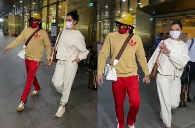 ਦੀਪਿਕਾ ਨੇ ਹਾਈ ਬਨ ਅਤੇ ਸਪੋਰਟ ਸ਼ੂਜ਼ ਨਾਲ ਆਪਣਾ ਲੁੱਕ ਨੂੰ ਪੂਰਾ ਕੀਤਾ ਹੈ। ਰਣਵੀਰ ਸਿੰਘ ਦੀ ਗੱਲ ਕਰੀਏ ਤਾਂ ਇਕ ਵਾਰ ਫ਼ਿਰ ਅਦਾਕਾਰ ਆਪਣੇ ਅਜੀਬ ਅੰਦਾਜ਼ ’ਚ ਨਜ਼ਰ ਆਏ। ਅਦਾਕਾਰ ਨੂੰ ਲਾਲ ਪੈਂਟ ਦੇ ਨਾਲ ਹੂਡੀ ’ਚ ਦੇਖਿਆ ਗਿਆ ਹੈ। ਦੋਵੇਂ ਏਅਰਪੋਰਟ ਇਕ ਦੂਸਰੇ ਦਾ ਹੱਥ ਫ਼ੜ੍ਹ ਪੋਜ਼ ਦੇ ਰਹੇ ਹਨ। ਜੋੜੇ ਦੀਆਂ ਇਹ ਤਸਵੀਰਾਂ ਸੋਸ਼ਲ ਮੀਡੀਆ ’ਤੇ ਕਾਫ਼ੀ ਵਾਇਰਲ ਹੋ ਰਹੀਆਂ ਹਨ।