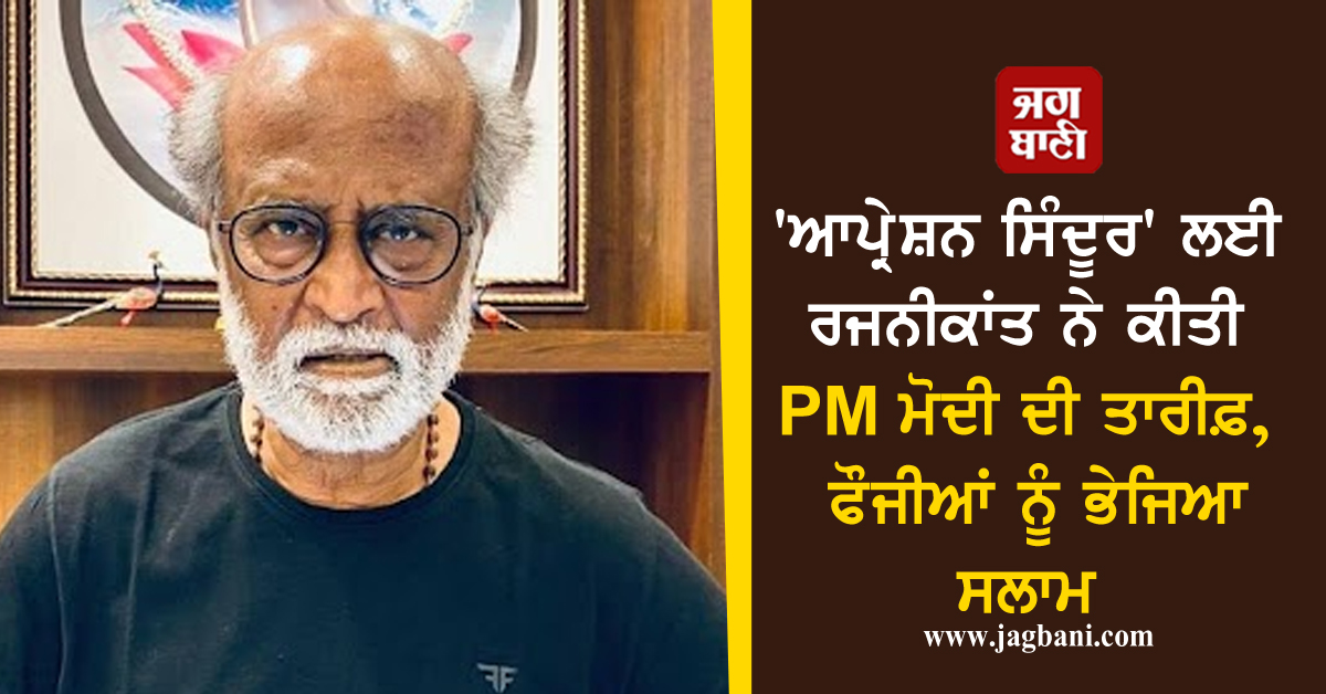 'ਆਪ੍ਰੇਸ਼ਨ ਸਿੰਦੂਰ' ਲਈ ਰਜਨੀਕਾਂਤ ਨੇ ਕੀਤੀ PM ਮੋਦੀ ਦੀ ਤਾਰੀਫ਼, ਫੌਜੀਆਂ ਨੂੰ ਭੇਜਿਆ ਸਲਾਮ