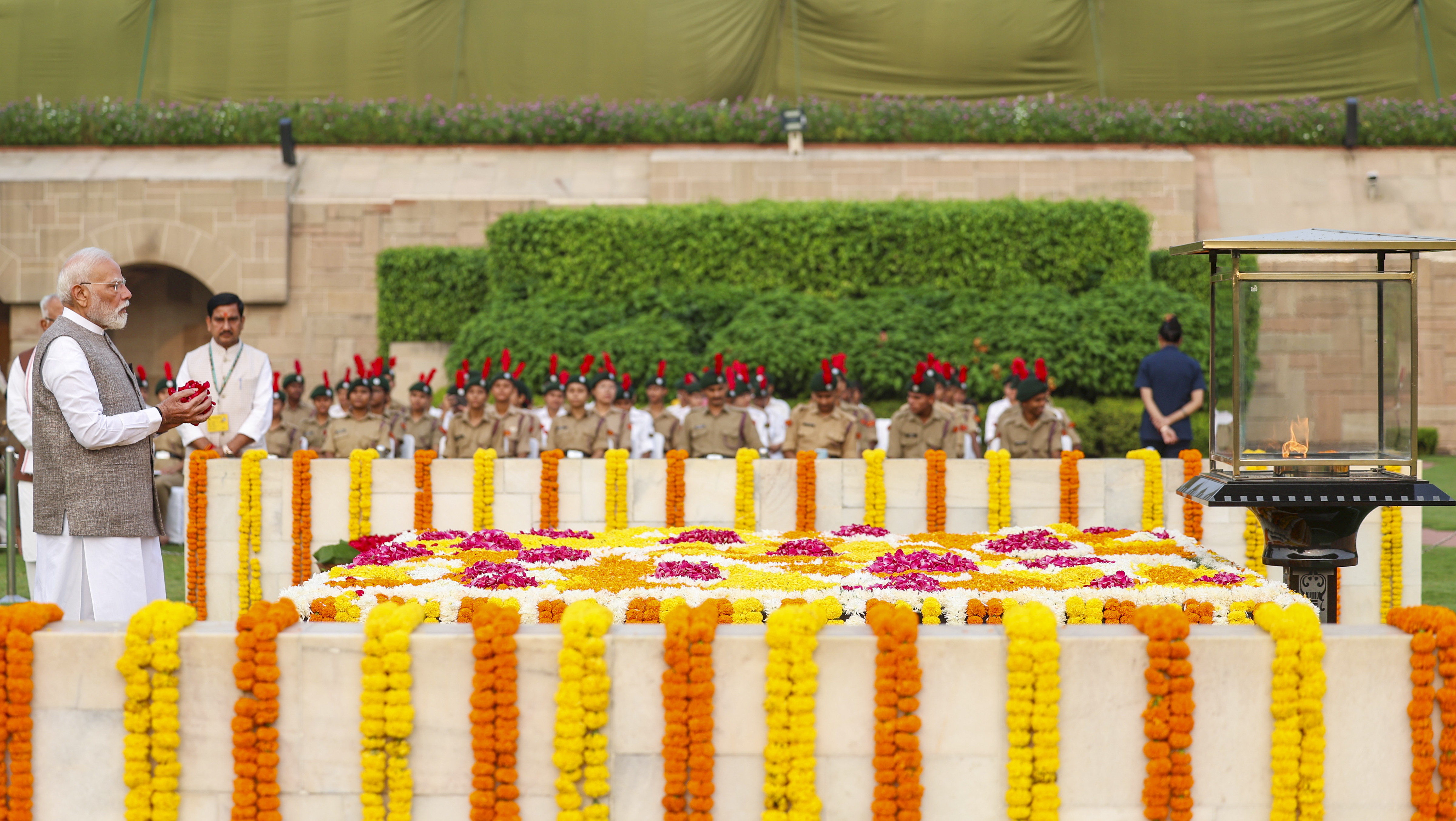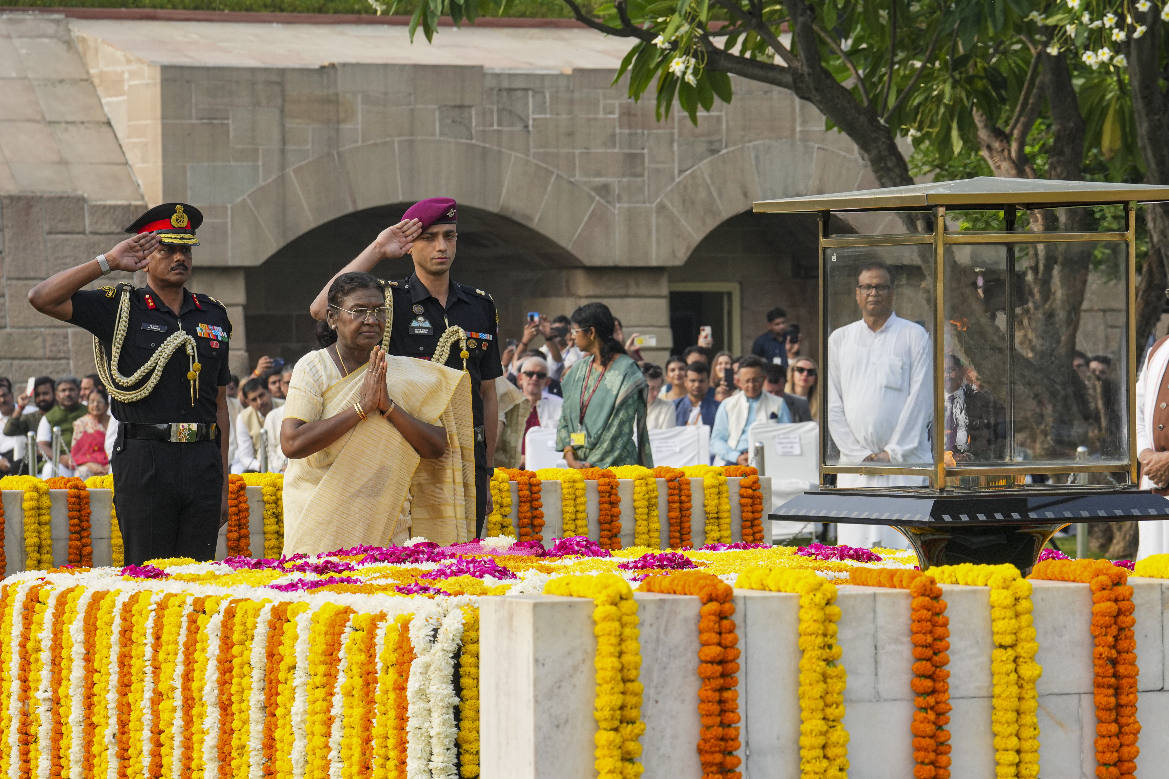 ਮਹਾਤਮਾ ਗਾਂਧੀ ਨੂੰ ਮੁਰਮੂ, ਰਾਧਾਕ੍ਰਿਸ਼ਨਨ ਤੇ ਮੋਦੀ ਸਮੇਤ ਕਈ ਆਗੂਆਂ ਨੇ ਭੇਟ ਕੀਤੀ ਸ਼ਰਧਾਂਜਲੀ