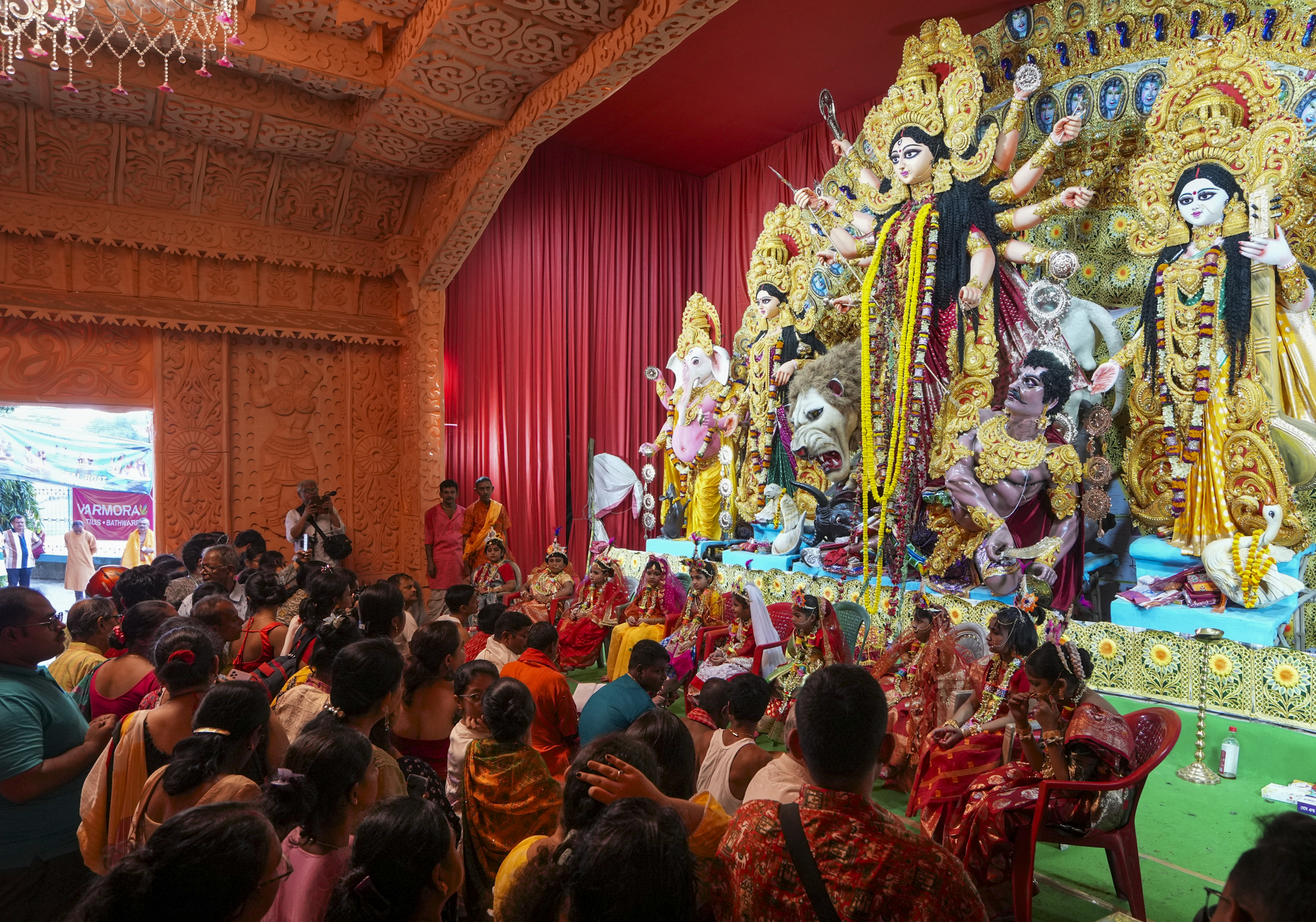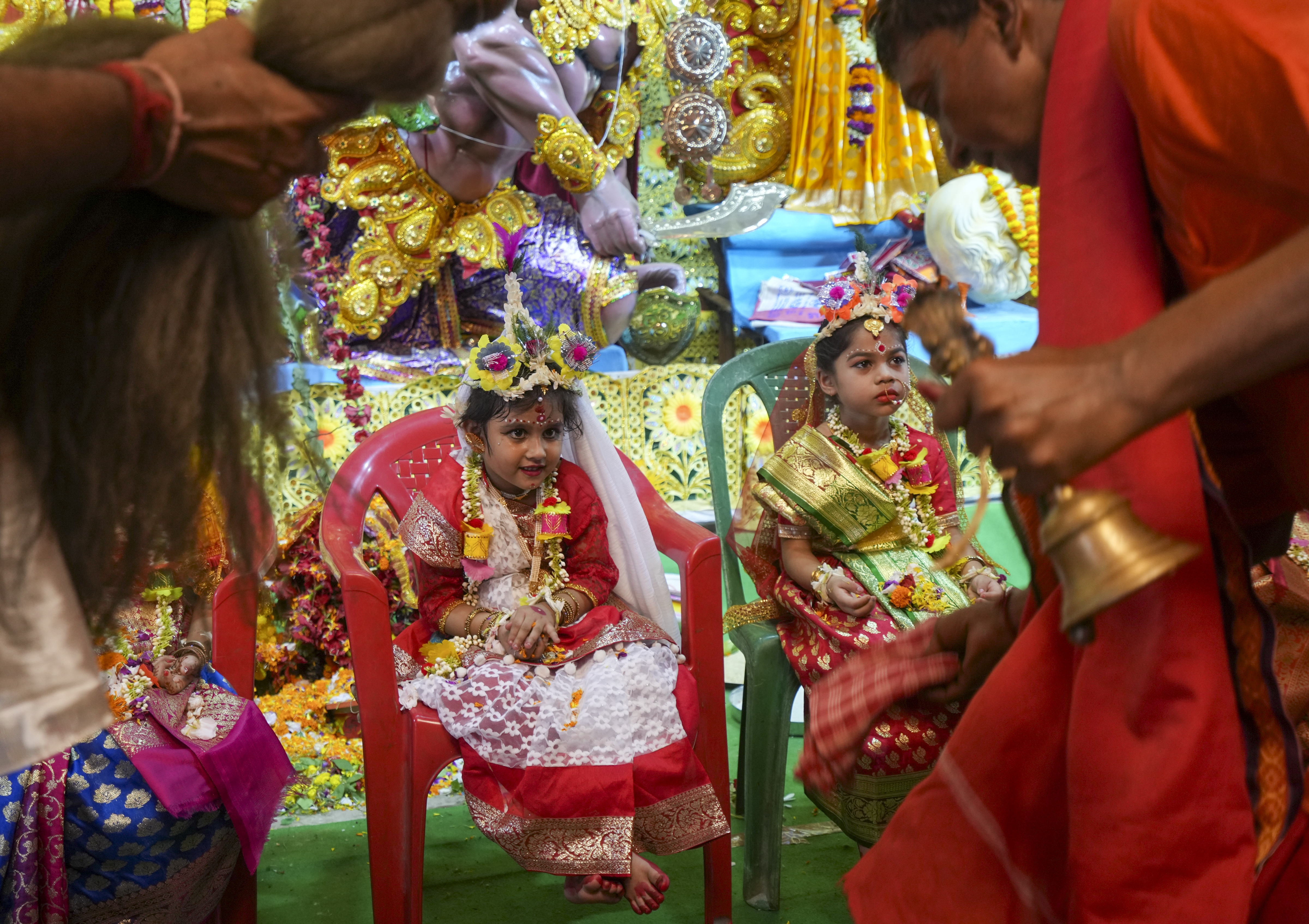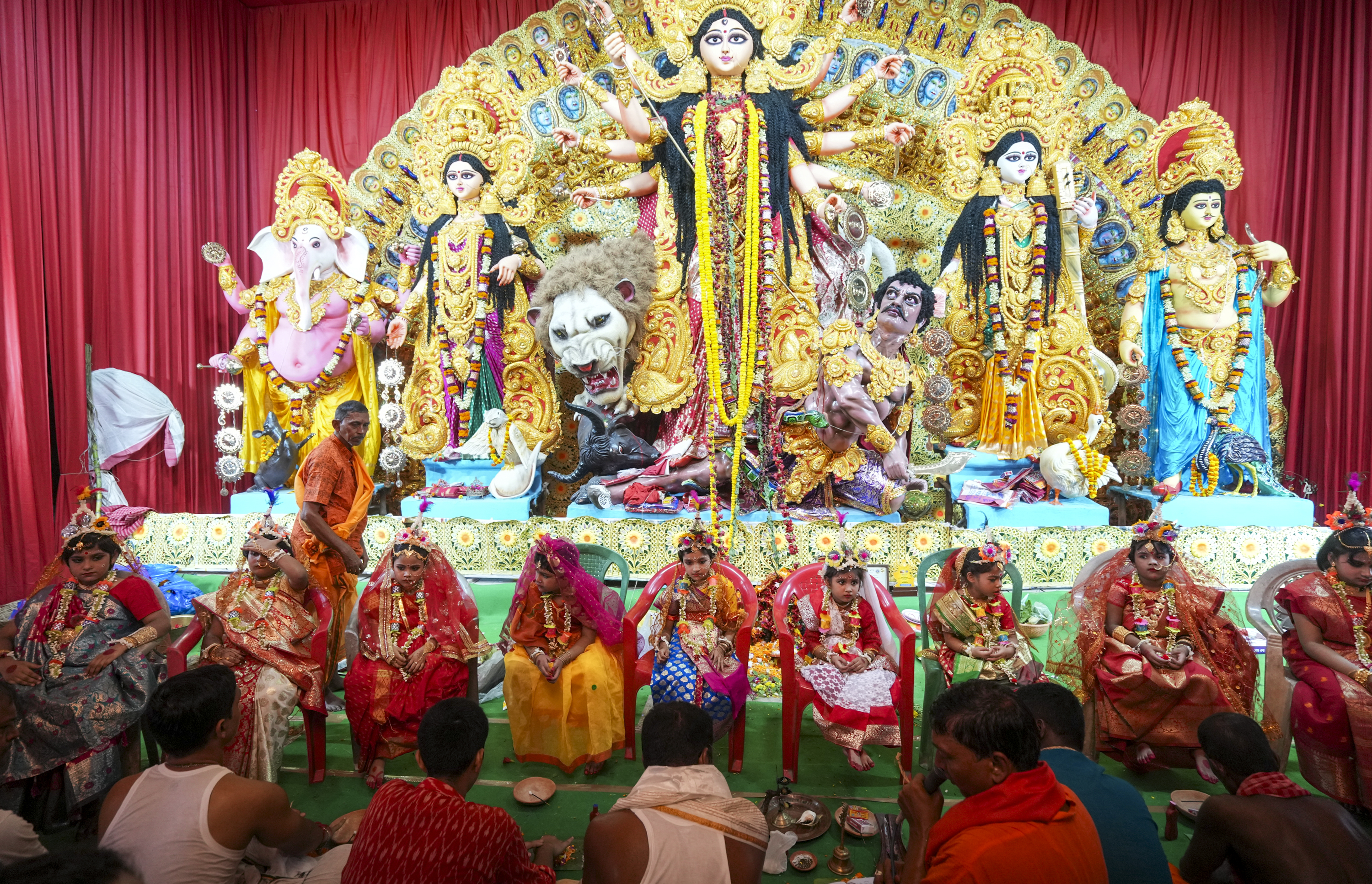 ਮਹਾਅਸ਼ਟਮੀ ਮੌਕੇ ਕੋਲਕਾਤਾ ਦੇ ਮੰਦਰ ਵਿਚ ਕੀਤੀ ਗਈ ਕੰਜਕ ਪੂਜਾ, ਦੇਖੋ ਤਸਵੀਰਾਂ