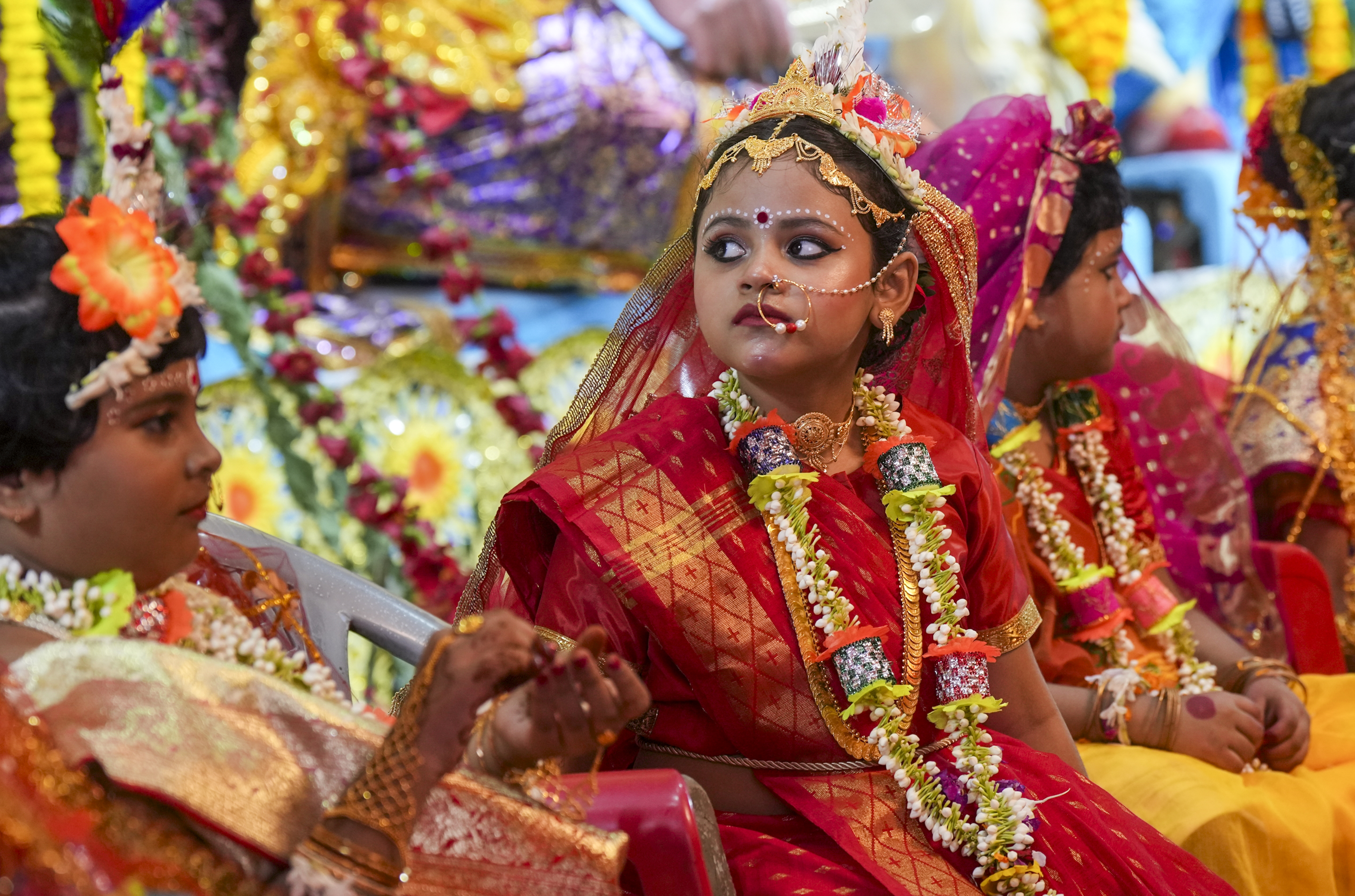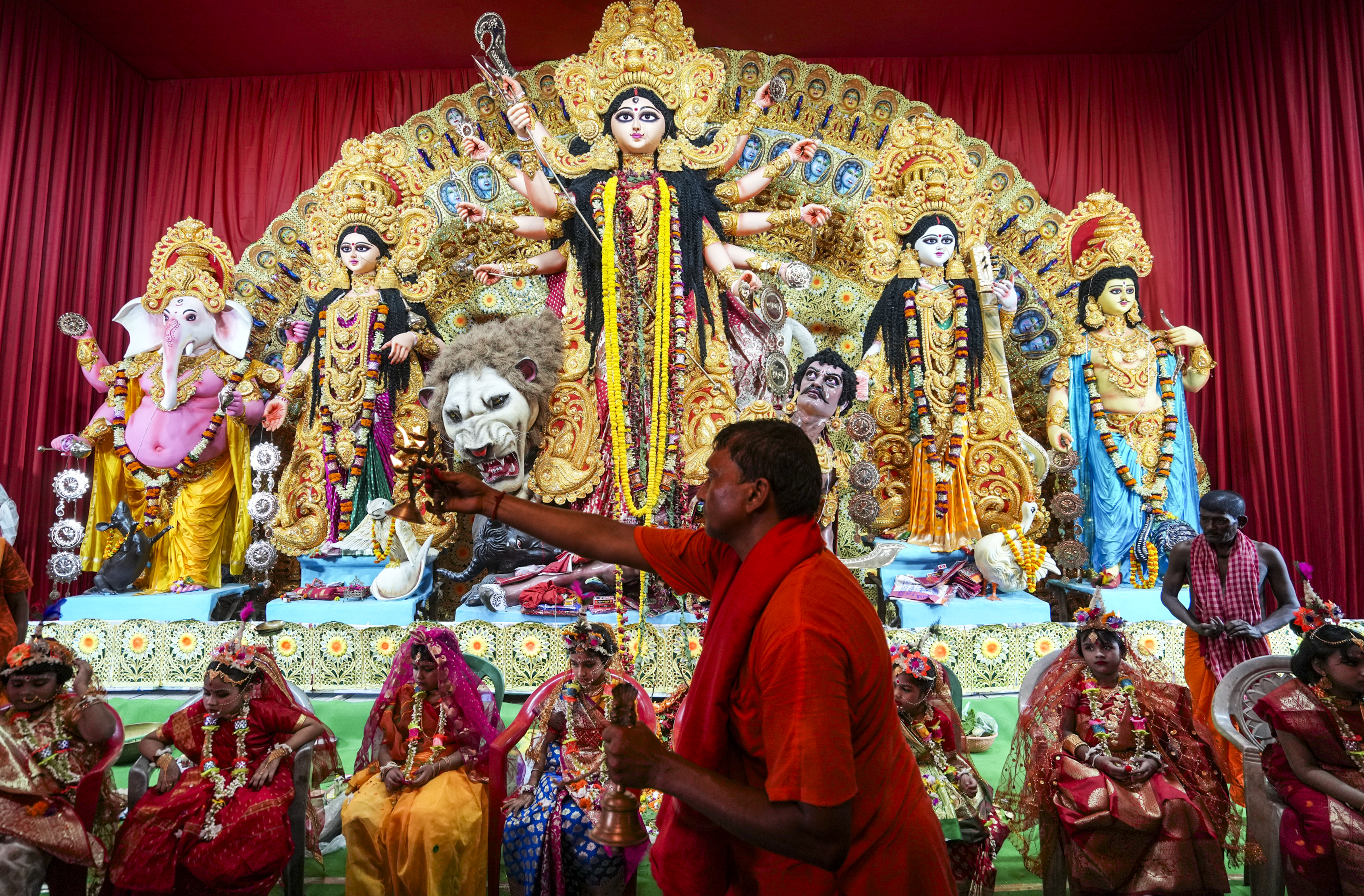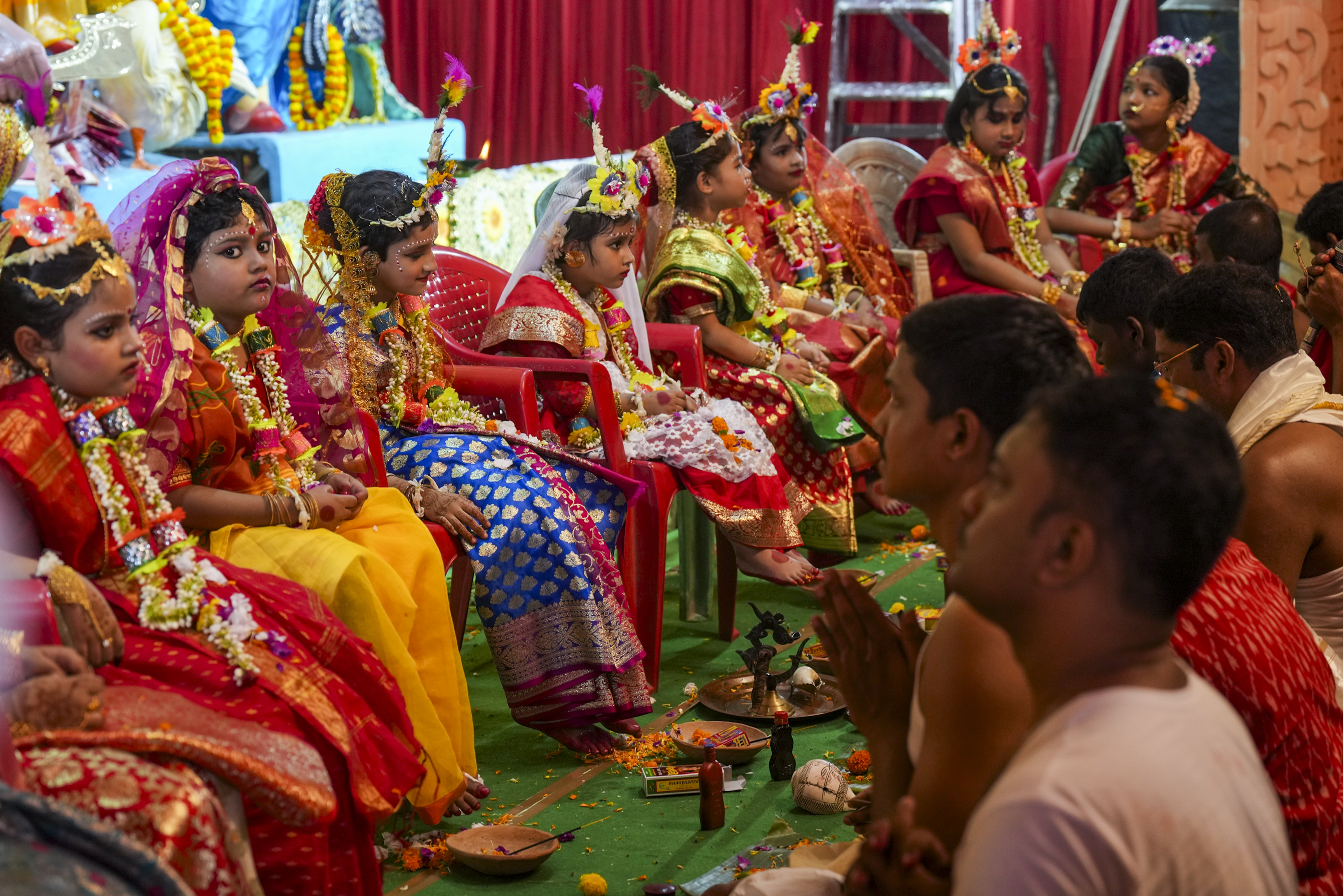 ਮਹਾਅਸ਼ਟਮੀ ਮੌਕੇ ਕੋਲਕਾਤਾ ਦੇ ਮੰਦਰ ਵਿਚ ਕੀਤੀ ਗਈ ਕੰਜਕ ਪੂਜਾ, ਦੇਖੋ ਤਸਵੀਰਾਂ