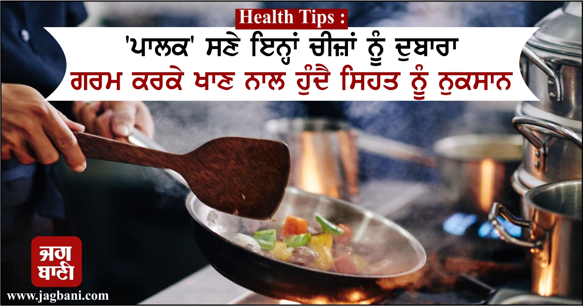 Health Tips : ''ਪਾਲਕ'' ਸਣੇ ਇਨ੍ਹਾਂ ਚੀਜ਼ਾਂ ਨੂੰ ਦੁਬਾਰਾ ਗਰਮ ਕਰਕੇ ਖਾਣ ਨਾਲ ਹੁੰਦੈ ਸਿਹਤ ਨੂੰ ਨੁਕਸਾਨ