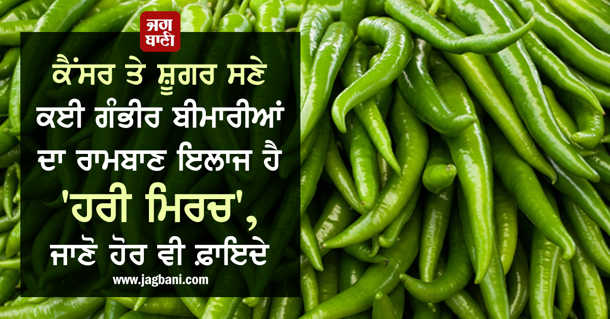 ਕੈਂਸਰ ਤੇ ਸ਼ੂਗਰ ਸਣੇ ਕਈ ਗੰਭੀਰ ਬੀਮਾਰੀਆਂ ਦਾ ਰਾਮਬਾਣ ਇਲਾਜ ਹੈ 'ਹਰੀ ਮਿਰਚ', ਜਾਣੋ ਹੋਰ ਵੀ ਫ਼ਾਇਦੇ