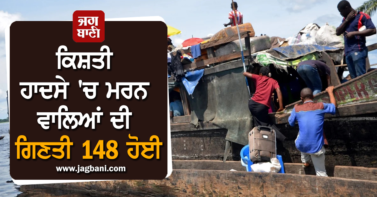 ਕਿਨਸ਼ਾਸਾ (ਏਪੀ): ਕਾਂਗੋ ਵਿਚ ਇਸ ਹਫ਼ਤੇ ਦੇ ਸ਼ੁਰੂ ਵਿੱਚ ਹੋਏ ਕਿਸ਼ਤੀ ਹਾਦਸੇ ਵਿੱਚ ਮਰਨ ਵਾਲਿਆਂ ਦੀ ਗਿਣਤੀ 50 ਤੋਂ ਵੱਧ ਕੇ 148 ਹੋ ਗਈ ਹੈ, ਜਦੋਂ ਕਿ 100 ਤੋਂ ਵੱਧ ਲੋਕ ਅਜੇ ਵੀ ਲਾਪਤਾ ਹਨ। ਅਧਿਕਾਰੀਆਂ ਨੇ ਇਹ ਜਾਣਕਾਰੀ ਦਿੱਤੀ। ਅਧਿਕਾਰੀਆਂ ਨੇ ਦੱਸਿਆ ਕਿ ਮੰਗਲਵਾਰ ਨੂੰ ਉੱਤਰ-ਪੱਛਮੀ ਕਾਂਗੋ ਵਿੱਚ ਅੱਗ ਲੱਗਣ ਤੋਂ ਬਾਅਦ ਇੱਕ ਕਿਸ਼ਤੀ ਦੇ ਪਲਟਣ ਨਾਲ ਘੱਟੋ-ਘੱਟ 148 ਲੋਕਾਂ ਦੀ ਮੌਤ ਹੋ ਗਈ ਅਤੇ ਸੈਂਕੜੇ ਲਾਪਤਾ ਹੋ ਗਏ।