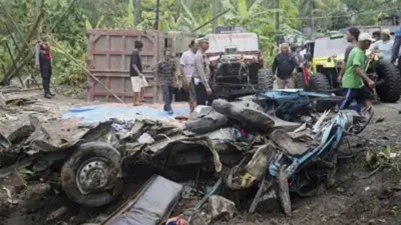 ਯੋਗਿਆਕਾਰਤਾ (ਇੰਡੋਨੇਸ਼ੀਆ) (ਏਪੀ)- ਇੰਡੋਨੇਸ਼ੀਆ ਦੇ ਕੇਂਦਰੀ ਜਾਵਾ ਪ੍ਰਾਂਤ ਵਿੱਚ ਇੱਕ ਢਲਾਣ ਵਾਲੀ ਸੜਕ 'ਤੇ ਇੱਕ ਡੰਪ ਟਰੱਕ ਇੱਕ ਮਿੰਨੀ ਬੱਸ ਨਾਲ ਟਕਰਾ ਗਿਆ, ਜਿਸ ਵਿੱਚ 11 ਲੋਕ ਮਾਰੇ ਗਏ, ਜਿੰਨ੍ਹਾਂ ਵਿਚ ਸਾਰੇ ਕਿੰਡਰਗਾਰਟਨ ਅਧਿਆਪਕ ਸਨ। ਅਧਿਕਾਰੀਆਂ ਨੇ ਬੁੱਧਵਾਰ ਨੂੰ ਇਸ ਸਬੰਧੀ ਜਾਣਕਾਰੀ ਦਿੱਤੀ।