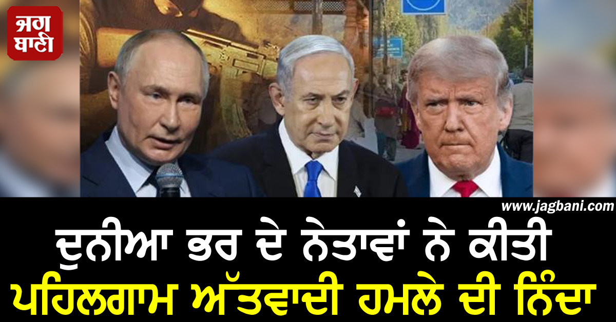 ਟਰੰਪ ਤੋਂ ਲੈ ਕੇ ਪੁਤਿਨ ਤੱਕ ਦੁਨੀਆ ਭਰ ਦੇ ਨੇਤਾਵਾਂ ਨੇ ਕੀਤੀ ਪਹਿਲਗਾਮ ਅੱਤਵਾਦੀ ਹਮਲੇ ਦੀ ਨਿੰਦਾ