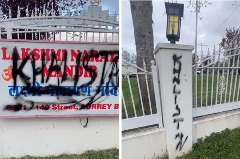 ਸਰੀ ’ਚ ਮੰਦਰ ਦੀਆਂ ਕੰਧਾਂ ’ਤੇ ਲਿਖੇ ਖਾਲਿਸਤਾਨੀ ਨਾਅਰੇ