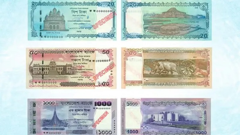ਬੰਗਲਾਦੇਸ਼ ਬੈਂਕ ਦੇ ਬੁਲਾਰੇ ਆਰਿਫ ਹੁਸੈਨ ਖਾਨ ਨੇ ਨਿਊਜ਼ ਏਜੰਸੀ ਏਐਫਪੀ ਨੂੰ ਦੱਸਿਆ,"ਨਵੀਂ ਲੜੀ ਅਤੇ ਡਿਜ਼ਾਈਨ ਦੇ ਤਹਿਤ ਨੋਟਾਂ 'ਤੇ ਕਿਸੇ ਵੀ ਵਿਅਕਤੀ ਦੀ ਫੋਟੋ ਨਹੀਂ ਹੋਵੇਗੀ, ਸਗੋਂ ਕੁਦਰਤੀ ਦ੍ਰਿਸ਼ ਅਤੇ ਰਵਾਇਤੀ ਸਥਾਨ ਦਿਖਾਈ ਦੇਣਗੇ।" ਬੈਂਕ ਨੇ ਐਤਵਾਰ ਨੂੰ ਨੌਂ ਵੱਖ-ਵੱਖ ਮੁੱਲਾਂ ਵਿੱਚੋਂ ਤਿੰਨ ਨੋਟ ਜਾਰੀ ਕੀਤੇ। ਖਾਨ ਨੇ ਕਿਹਾ,"ਨਵੇਂ ਨੋਟ ਕੇਂਦਰੀ ਬੈਂਕ ਦੇ ਮੁੱਖ ਦਫਤਰ ਅਤੇ ਬਾਅਦ ਵਿੱਚ ਦੇਸ਼ ਭਰ ਦੇ ਹੋਰ ਦਫਤਰਾਂ ਤੋਂ ਜਾਰੀ ਕੀਤੇ ਜਾਣਗੇ।" ਉਨ੍ਹਾਂ ਕਿਹਾ ਕਿ ਨਵੀਂ ਕਰੰਸੀ ਡਿਜ਼ਾਈਨ ਪੂਰੀ ਤਰ੍ਹਾਂ ਧਿਆਨ ਵਿਅਕਤੀਆਂ ਤੋਂ ਹਟਾ ਦੇਵੇਗੀ। ਬੰਗਲਾਦੇਸ਼ ਦੇ ਨਵੇਂ ਨੋਟਾਂ ਵਿੱਚ ਹਿੰਦੂ ਅਤੇ ਬੋਧੀ ਮੰਦਰਾਂ ਦੇ ਨਾਲ-ਨਾਲ ਇਤਿਹਾਸਕ ਮਹਿਲਾਂ ਦੀਆਂ ਤਸਵੀਰਾਂ ਹੋਣਗੀਆਂ। ਇਨ੍ਹਾਂ ਵਿੱਚ ਬ੍ਰਿਟਿਸ਼ ਸ਼ਾਸਨ ਦੌਰਾਨ ਬੰਗਾਲ ਦੇ ਅਕਾਲ ਨੂੰ ਦਰਸਾਉਂਦੀਆਂ ਸਵਰਗੀ ਚਿੱਤਰਕਾਰ ਜ਼ੈਨੁਲ ਆਬੇਦੀਨ ਦੀਆਂ ਕਲਾਕ੍ਰਿਤੀਆਂ ਵੀ ਸ਼ਾਮਲ ਹੋਣਗੀਆਂ। ਇੱਕ ਹੋਰ ਨੋਟ ਵਿੱਚ ਪਾਕਿਸਤਾਨ ਵਿਰੁੱਧ ਆਜ਼ਾਦੀ ਸੰਗਰਾਮ ਵਿੱਚ ਆਪਣੀਆਂ ਜਾਨਾਂ ਗੁਆਉਣ ਵਾਲਿਆਂ ਦੇ ਸਨਮਾਨ ਵਿੱਚ ਰਾਸ਼ਟਰੀ ਸ਼ਹੀਦ ਸਮਾਰਕ ਹੋਵੇਗਾ। ਬਾਕੀ ਨੋਟਾਂ ਦੇ ਮੁੱਲ ਇੱਕ-ਇੱਕ ਕਰਕੇ ਜਾਰੀ ਕੀਤੇ ਜਾਣਗੇ।