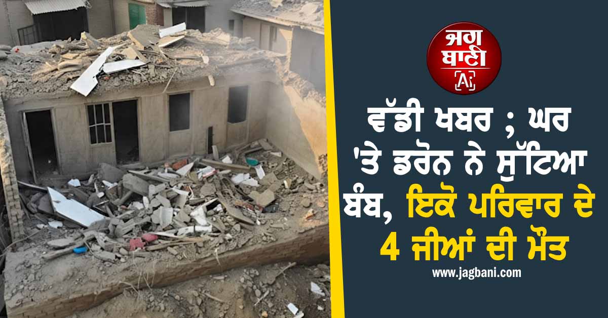 ਵੱਡੀ ਖਬਰ ; ਘਰ 'ਤੇ ਡਰੋਨ ਨੇ ਸੁੱਟਿਆ ਬੰਬ, ਇਕੋ ਪਰਿਵਾਰ ਦੇ 4 ਜੀਆਂ ਦੀ ਮੌਤ