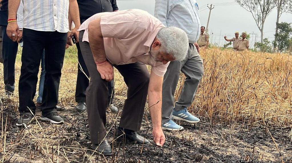 ਅੱਗ ਨਾਲ ਨੁਕਸਾਨੀ ਕਣਕ ਦੀ ਫ਼ਸਲ ਦਾ ਕੈਬਨਿਟ ਮੰਤਰੀ ਕਟਾਰੂਚੱਕ ਨੇ ਲਿਆ ਜਾਇਜ਼ਾ