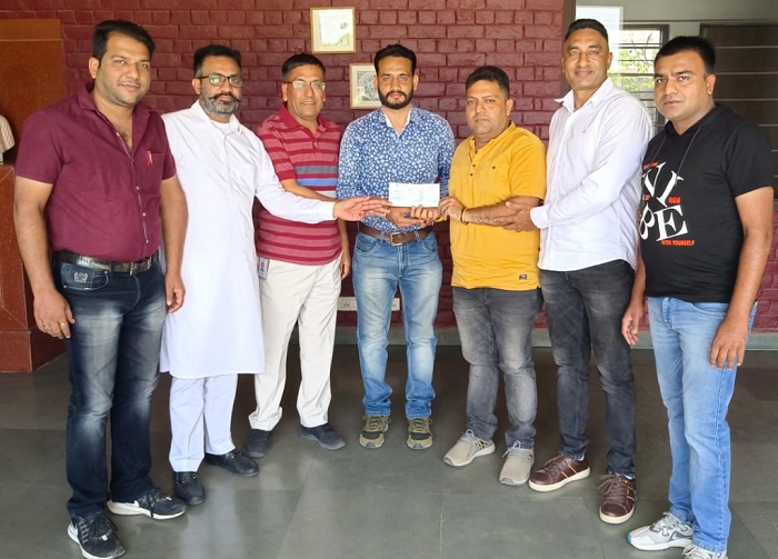 ਚੰਦਨ ਸ਼ਰਮਾ ਨੂੰ ਚੈੱਕ ਦਿੰਦੇ ਹੋਏ ਰੁਪਿੰਦਰ ਗੁਪਤਾ, ਜ਼ਿਲ੍ਹਾ ਕ੍ਰਿਕਟ ਐਸੋਸੀਏਸ਼ਨ ਦੇ ਪ੍ਰਧਾਨ ਵਿਵੇਕ ਸਿੰਧਵਾਨੀ, ਖੱਤਰੀ ਸਭਾ ਦੇ ਪ੍ਰਧਾਨ ਰਾਜੀਵ ਵਰਮਾ ਰਿੰਪੀ, ਜ਼ਿਲ੍ਹਾ ਬਾਡੀ ਬਿਲਡਿੰਗ ਐਸੋਸੀਏਸ਼ਨ ਦੇ ਪ੍ਰਧਾਨ ਰਣਜੀਤ ਸਿੰਘ ਅਤੇ ਕਰਿਆਨਾ ਐਸੋਸੀਏਸ਼ਨ ਦੇ ਸਨੀ ਕਾਂਸਲ।