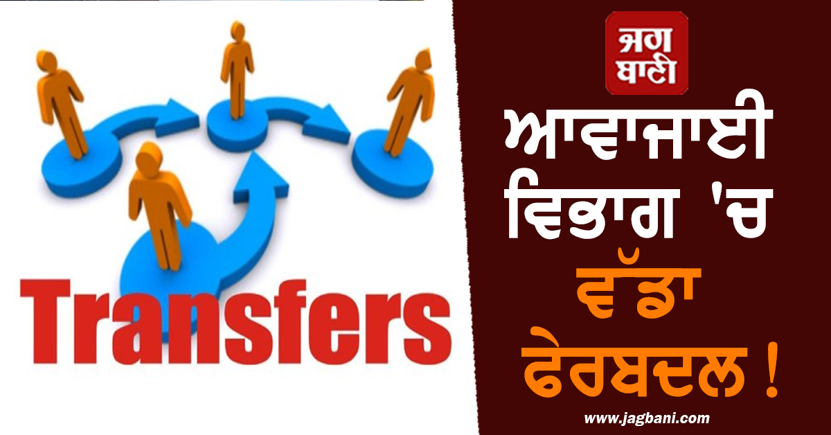 ਆਵਾਜਾਈ ਵਿਭਾਗ ''ਚ ਵੱਡਾ ਫੇਰਬਦਲ ! 11 RTO ਤੇ 24 ARTO ਦੇ ਕੀਤੇ ਟ੍ਰਾਂਸਫਰ, ਦੇਖੋ ਲਿਸਟ