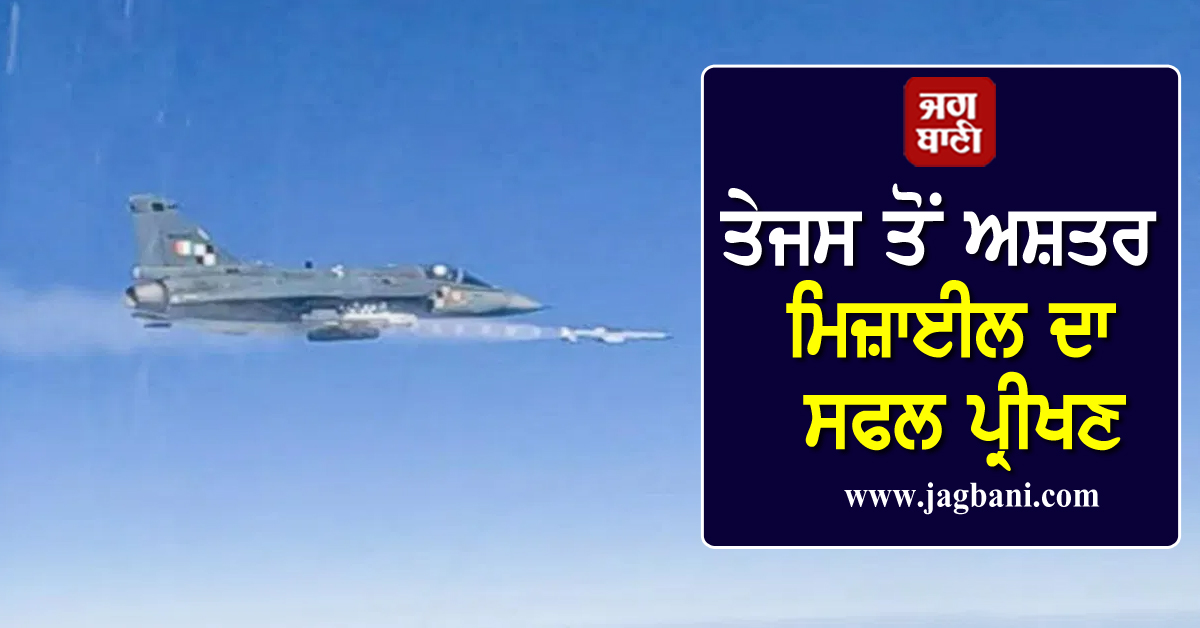 ਨੈਸ਼ਨਲ ਡੈਸਕ : ਭਾਰਤ ਦੇ ਸਵਦੇਸ਼ੀ ਤੌਰ 'ਤੇ ਬਣੇ ਹਲਕੇ ਲੜਾਕੂ ਜਹਾਜ਼ ਤੇਜਸ ਨੇ ਬੁੱਧਵਾਰ ਨੂੰ ਸਵਦੇਸ਼ੀ ਹਵਾ ਤੋਂ ਹਵਾ 'ਚ ਮਾਰ ਕਰਨ ਵਾਲੀ ਮਿਜ਼ਾਈਲ 'ਅਸ਼ਤਰ' ਦਾ ਸਫਲ ਪ੍ਰੀਖਣ ਕੀਤਾ। ਰੱਖਿਆ ਮੰਤਰਾਲੇ ਮੁਤਾਬਕ ਮਿਜ਼ਾਈਲ ਦਾ ਪ੍ਰੀਖਣ ਓਡੀਸ਼ਾ ਦੇ ਚਾਂਦੀਪੁਰ ਤੱਟ ਤੋਂ ਕੀਤਾ ਗਿਆ। ਮੰਤਰਾਲੇ ਨੇ ਕਿਹਾ, "ਇਸ ਪ੍ਰੀਖਣ ਵਿੱਚ ਮਿਜ਼ਾਈਲ ਦੇ ਇੱਕ ਉੱਡਦੇ ਨਿਸ਼ਾਨੇ 'ਤੇ ਸਿੱਧੀ ਮਾਰ ਦਾ ਸਫਲਤਾਪੂਰਵਕ ਪ੍ਰਦਰਸ਼ਨ ਕੀਤਾ ਗਿਆ ਸੀ।"