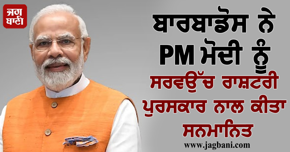 ਬਾਰਬਾਡੋਸ ਨੇ PM ਮੋਦੀ ਨੂੰ ਸਰਵਉੱਚ ਰਾਸ਼ਟਰੀ ਪੁਰਸਕਾਰ ਨਾਲ ਕੀਤਾ ਸਨਮਾਨਿਤ
