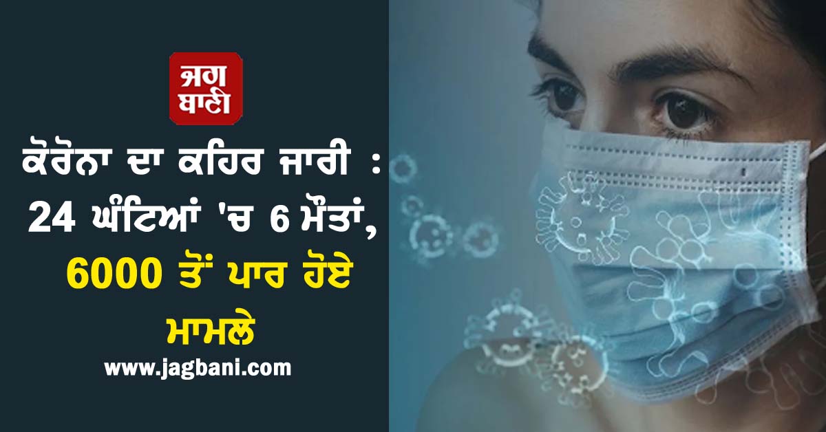 ਕੋਰੋਨਾ ਦਾ ਕਹਿਰ ਜਾਰੀ : 24 ਘੰਟਿਆਂ ''ਚ 6 ਮੌਤਾਂ, 6000 ਤੋਂ ਪਾਰ ਹੋਏ ਮਾਮਲੇ