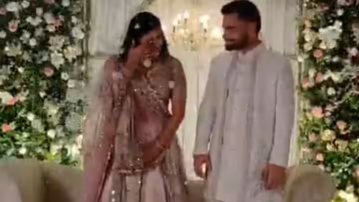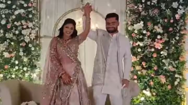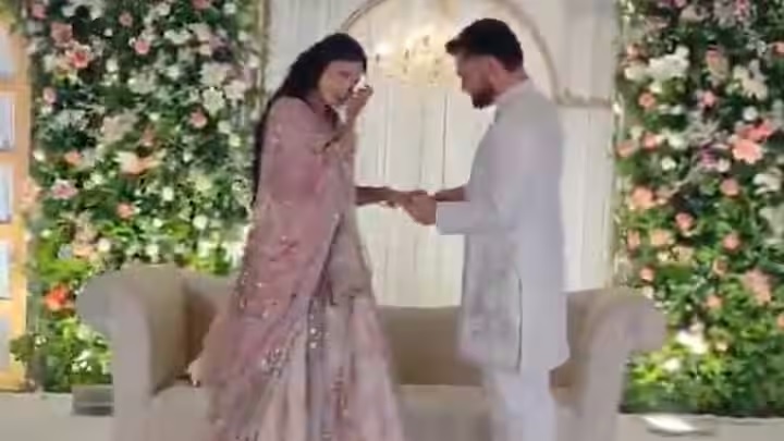 ਰਿੰਕੂ ਸਿੰਘ ਪ੍ਰਿਆ ਸਰੋਜ ਦਾ ਹੱਥ ਫੜ ਕੇ ਸਟੇਜ 'ਤੇ ਦਾਖਲ ਹੋਇਇਆ। ਇਸ ਦੌਰਾਨ 'ਖੁਸ਼ੀਆਂ ਦਾ ਚੜ੍ਹਿਆ' ਗੀਤ ਚੱਲ ਰਿਹਾ ਸੀ।