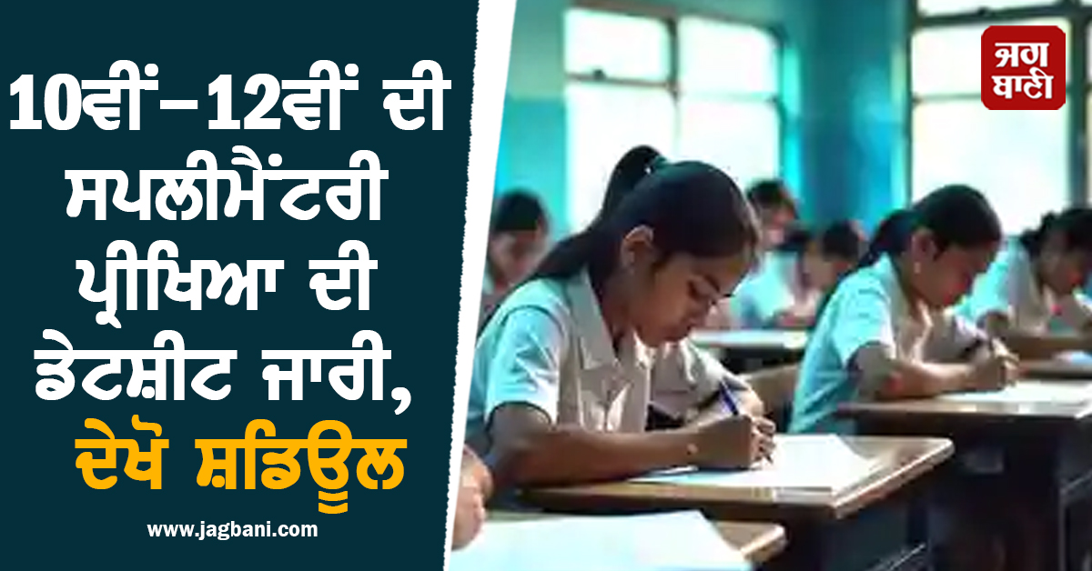 10ਵੀਂ-12ਵੀਂ ਦੀ ਸਪਲੀਮੈਂਟਰੀ ਪ੍ਰੀਖਿਆ ਦੀ ਡੇਟਸ਼ੀਟ ਜਾਰੀ, ਦੇਖੋ ਸ਼ਡਿਊਲ