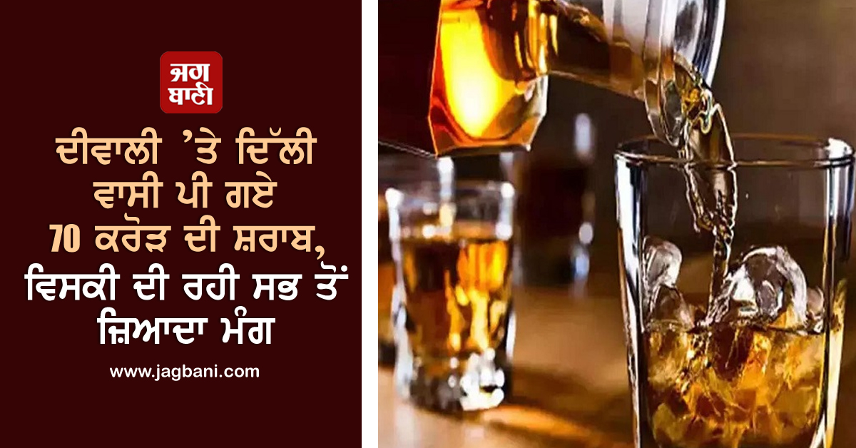 ਦੀਵਾਲੀ ’ਤੇ ਦਿੱਲੀ ਵਾਸੀ ਪੀ ਗਏ 70 ਕਰੋੜ ਦੀ ਸ਼ਰਾਬ, ਵਿਸਕੀ ਦੀ ਰਹੀ ਸਭ ਤੋਂ ਜ਼ਿਆਦਾ ਮੰਗ