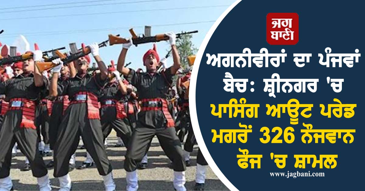 ਅਗਨੀਵੀਰਾਂ ਦਾ ਪੰਜਵਾਂ ਬੈਚ: ਸ਼੍ਰੀਨਗਰ 'ਚ ਪਾਸਿੰਗ ਆਊਟ ਪਰੇਡ ਮਗਰੋਂ 326 ਨੌਜਵਾਨ ਫੌਜ 'ਚ ਸ਼ਾਮਲ