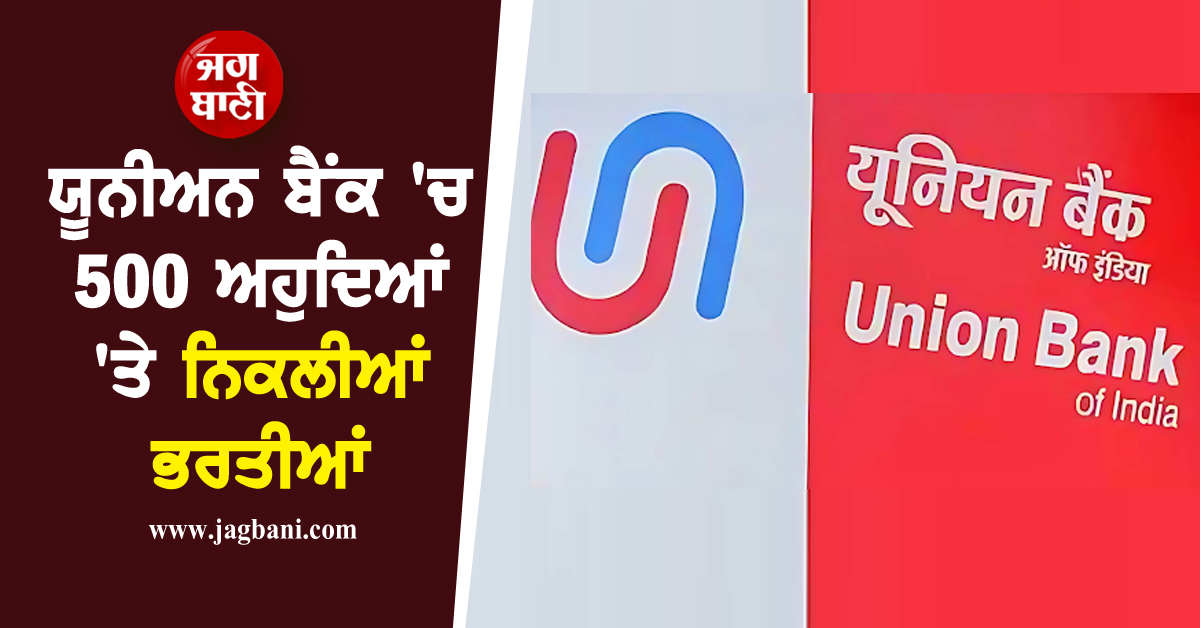 ਯੂਨੀਅਨ ਬੈਂਕ 'ਚ 500 ਅਹੁਦਿਆਂ 'ਤੇ ਨਿਕਲੀਆਂ ਭਰਤੀਆਂ, ਜਾਣੋ ਯੋਗਤਾ ਸਣੇ ਪੂਰਾ ਵੇਰਵਾ