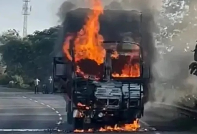 ਚੱਲਦੇ ਟਰੱਕ ਨੂੰ ਲੱਗੀ ਭਿਆਨਕ ਅੱਗ, ਡਰਾਈਵਰ ਨੇ ਮਸਾਂ ਬਚਾਈ ਜਾਨ
