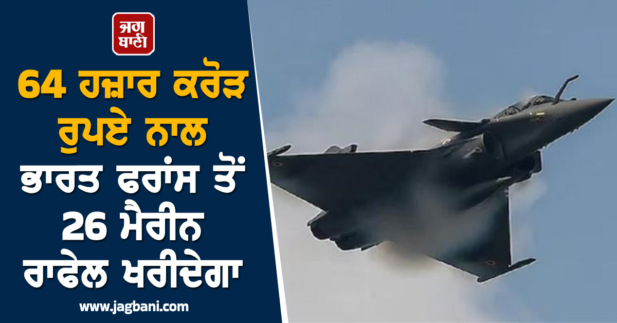 ਸਮੁੰਦਰੀ ਫੌਜ ਦੀ ਤਾਕਤ ਵਧੇਗੀ, 64 ਹਜ਼ਾਰ ਕਰੋੜ ਰੁਪਏ ਨਾਲ ਭਾਰਤ ਫਰਾਂਸ ਤੋਂ 26 ਮੈਰੀਨ ਰਾਫੇਲ ਖਰੀਦੇਗਾ