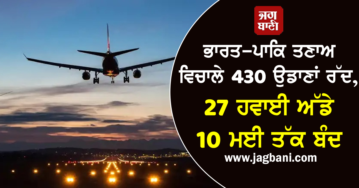 ਭਾਰਤ-ਪਾਕਿ ਤਣਾਅ ਵਿਚਾਲੇ 430 ਉਡਾਣਾਂ ਰੱਦ, 27 ਹਵਾਈ ਅੱਡੇ 10 ਮਈ ਤੱਕ ਬੰਦ