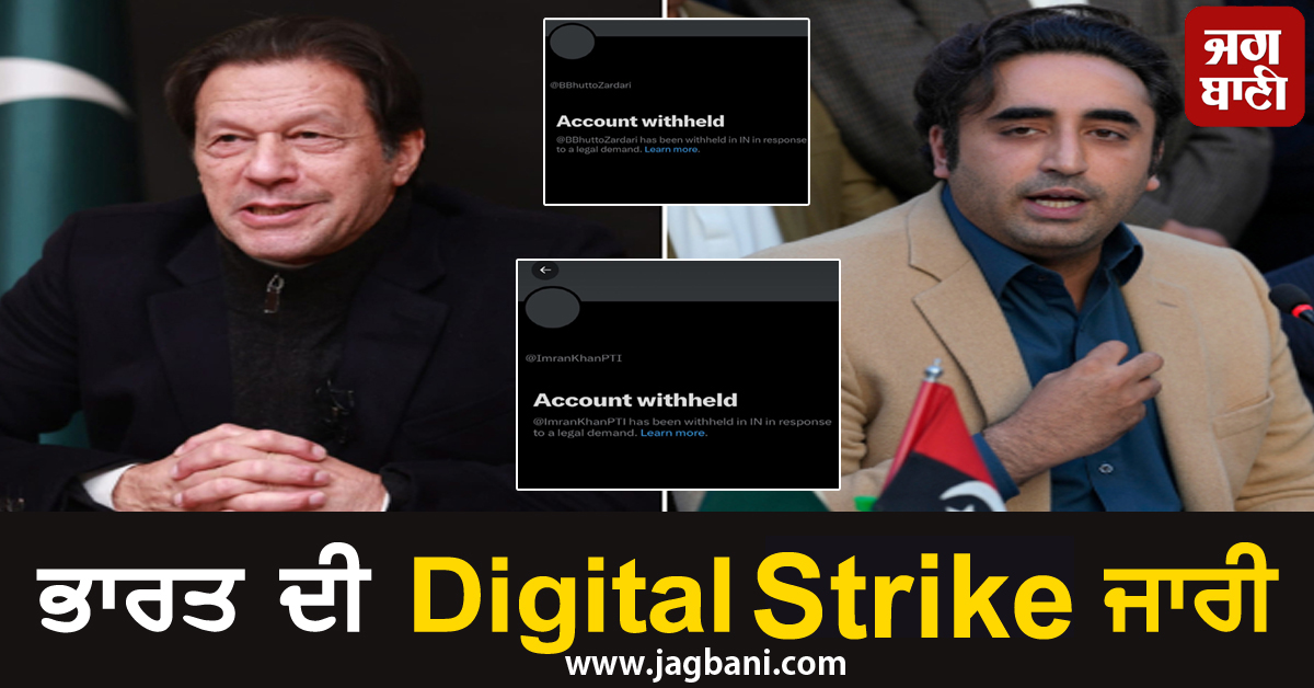 ਭਾਰਤ ਦੀ Digital Strike ਜਾਰੀ, ਇਮਰਾਨ ਖਾਨ ਤੇ ਬਿਲਾਵਰ ਭੁੱਟੋ ਦੇ X ਖਾਤੇ ਕੀਤੇ ਸਸਪੈਂਡ