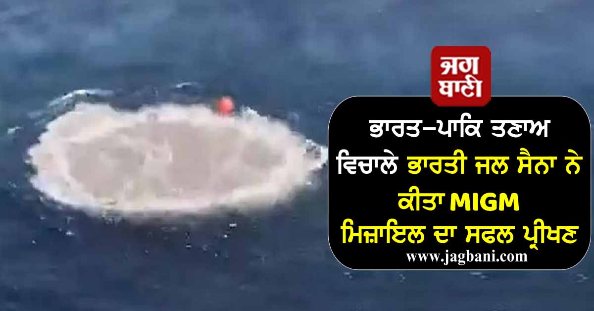 ਭਾਰਤ-ਪਾਕਿ ਤਣਾਅ ਵਿਚਾਲੇ ਭਾਰਤੀ ਜਲ ਸੈਨਾ ਨੇ ਕੀਤਾ MIGM ਮਿਜ਼ਾਇਲ ਦਾ ਸਫਲ ਪ੍ਰੀਖਣ