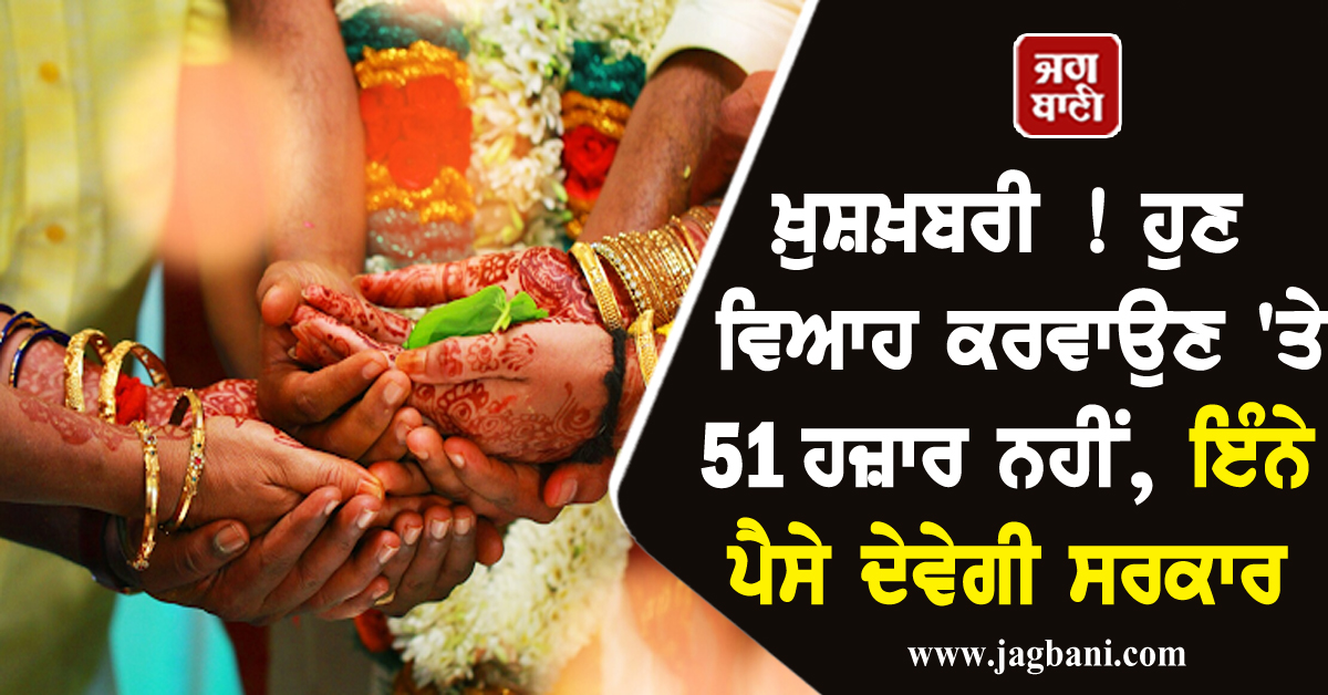 ਖ਼ੁਸ਼ਖ਼ਬਰੀ ! ਹੁਣ ਵਿਆਹ ਕਰਵਾਉਣ ''ਤੇ 51 ਹਜ਼ਾਰ ਨਹੀਂ, ਇੰਨੇ ਪੈਸੇ ਦੇਵੇਗੀ ਸਰਕਾਰ