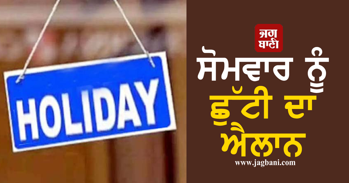 ਸੋਮਵਾਰ ਨੂੰ ਛੁੱਟੀ ਦਾ ਐਲਾਨ, ਸਕੂਲ-ਕਾਲਜ ਰਹਿਣਗੇ ਬੰਦ