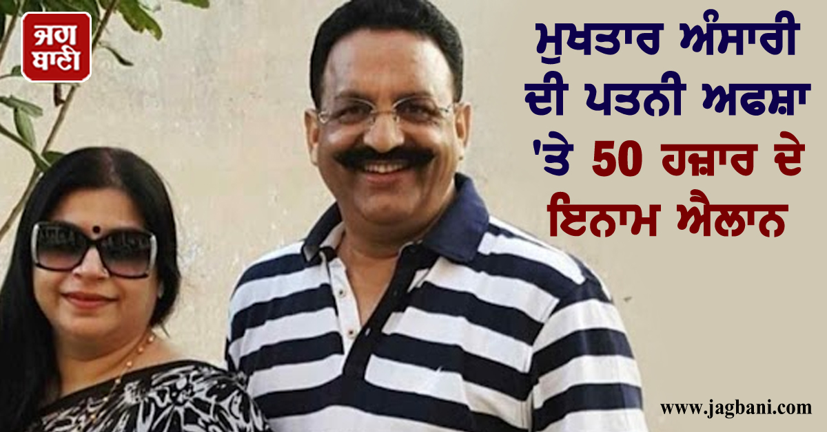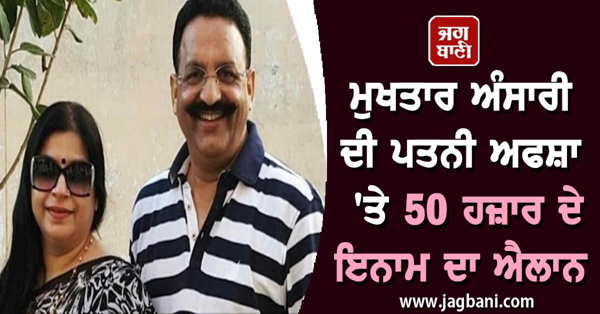 ਮੁਖਤਾਰ ਅੰਸਾਰੀ ਦੀ ਪਤਨੀ ਅਫਸ਼ਾ ਵੀ ਮੋਸਟ ਵਾਂਟੇਡ, ਸੂਚਨਾ ਦੇਣ ਵਾਲੇ ਨੂੰ ਮਿਲੇਗਾ 50 ਹਜ਼ਾਰ ਦਾ ਇਨਾਮ
