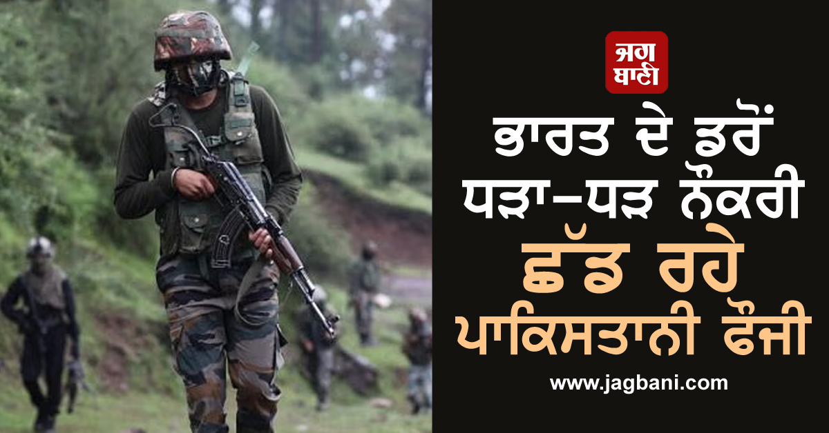 ਵੈੱਬ ਡੈਸਕ : LOC 'ਤੇ ਭਾਰਤੀ ਅਤੇ ਪਾਕਿਸਤਾਨੀ ਫੌਜ ਵਿਚਕਾਰ ਵਧਦੇ ਤਣਾਅ ਕਾਰਨ, ਪਾਕਿਸਤਾਨੀ ਫੌਜ ਦੇ ਜਵਾਨ ਅਤੇ ਅਧਿਕਾਰੀ ਆਪਣੀਆਂ ਜਾਨਾਂ ਬਚਾਉਣ ਲਈ ਅਸਤੀਫ਼ਾ ਦੇ ਰਹੇ ਹਨ। ਜ਼ਿਆਦਾਤਰ ਸੈਨਿਕ ਅਤੇ ਅਧਿਕਾਰੀ ਆਪਣੇ ਪਰਿਵਾਰਕ ਮੈਂਬਰਾਂ ਦੇ ਦਬਾਅ ਕਾਰਨ ਅਤੇ ਕੁਝ ਮੌਤ ਦੇ ਡਰ ਕਾਰਨ ਆਪਣੀਆਂ ਨੌਕਰੀਆਂ ਛੱਡ ਰਹੇ ਹਨ।