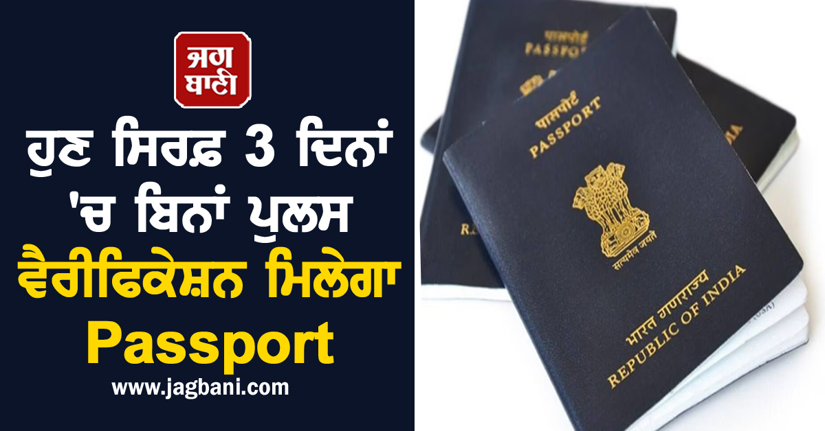 ਹੁਣ ਸਿਰਫ਼ 3 ਦਿਨਾਂ ''ਚ ਬਿਨਾਂ ਪੁਲਸ ਵੈਰੀਫਿਕੇਸ਼ਨ ਮਿਲੇਗਾ Passport, ਜਾਣੋ ਕੀ ਹੈ ਪੂਰਾ Process