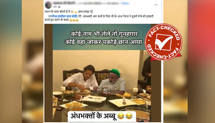 ਨਵੀਂ ਦਿੱਲੀ (ਵਿਸ਼ਵਾਸ ਨਿਊਜ਼)। ਪਾਕਿਸਤਾਨ ਦੇ ਸਾਬਕਾ ਪ੍ਰਧਾਨ ਮੰਤਰੀ ਇਮਰਾਨ ਖ਼ਾਨ ਅਤੇ ਭਾਰਤੀ ਪੀਐਮ ਨਰਿੰਦਰ ਮੋਦੀ ਦੀ ਇੱਕ ਤਸਵੀਰ ਸੋਸ਼ਲ ਮੀਡੀਆ ‘ਤੇ ਵਾਇਰਲ ਹੋ ਰਹੀ ਹੈ। ਇਸ ਵਿਚ, ਦੋਵਾਂ ਨੂੰ ਇਕੋ ਟੇਬਲ ‘ਤੇ ਖਾਣਾ ਖਾਂਦੇ ਹੋਏ ਵੇਖਿਆ ਜਾ ਸਕਦਾ ਹੈ। ਤਸਵੀਰ ਨੂੰ ਸਾਂਝਾ ਕਰਦਿਆਂ ਦਾਅਵਾ ਕੀਤਾ ਜਾ ਰਿਹਾ ਹੈ ਕਿ ਦੂੱਜੇ ਰੋਜ਼ੇ ਦੀ ਇਫ਼ਤਾਰੀ ਪ੍ਰਧਾਨ ਮੰਤਰੀ ਮੋਦੀ ਨੇ ਇਮਰਾਨ ਖਾਨ ਨਾਲ ਕੀਤੀ।