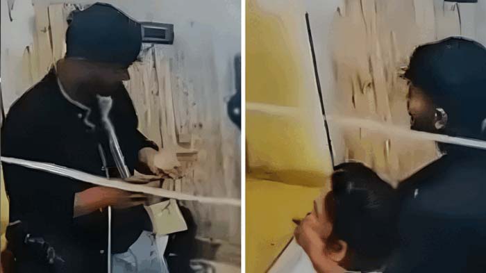 ਗਾਜ਼ੀਆਬਾਦ– ਸ਼ਰਾਰਤੀ ਅਨਸਰ ਸ਼ਰਮਸਾਰ ਕਰਨ ਵਾਲੀਆਂ ਹਰਕਤਾਂ ਤੋਂ ਬਾਜ ਨਹੀਂ ਆ ਰਹੇ। ਗਾਜ਼ੀਆਬਾਦ ਦੇ ਵੇਵ ਸਿਟੀ ਖੇਤਰ ’ਚ ਸੈਲੂਨ ਦੇ ਮੁਲਾਜ਼ਮ ਦੀ ਇਕ ਵੀਡੀਓ ਵਾਇਰਲ ਹੋਈ ਹੈ, ਜਿਸ ਵਿਚ ਉਹ ਥੁੱਕ ਲਾ ਕੇ ਮਸਾਜ ਕਰਦਾ ਨਜ਼ਰ ਆ ਰਿਹਾ ਹੈ।