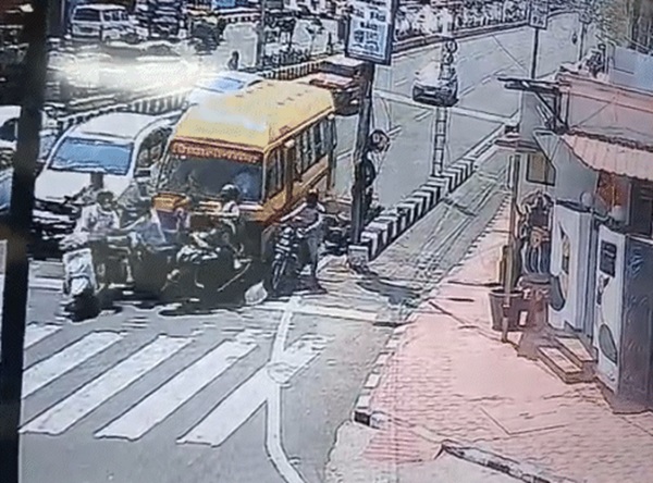 ਇਸ ਘਟਨਾ ਨਾਲ ਸਬੰਧਤ ਇਕ ਸੀਸੀਟੀਵੀ ਫੁਟੇਜ ਵੀ ਸਾਹਮਣੇ ਆਈ ਹੈ, ਜਿਸ 'ਚ ਇਹ ਸਾਫ਼ ਦੇਖਿਆ ਜਾ ਸਕਦਾ ਹੈ ਕਿ ਇਕ ਤੇਜ਼ ਰਫ਼ਤਾਰ ਪੀਲੀ ਸਕੂਲ ਬੱਸ ਲਾਲ ਬੱਤੀ 'ਤੇ ਖੜ੍ਹੀ ਇਕ ਕਾਰ ਨੂੰ ਟੱਕਰ ਮਾਰਦੀ ਹੈ ਅਤੇ ਫਿਰ ਪਿੱਛੇ ਤੋਂ ਇਕ ਮੋਟਰਸਾਈਕਲ ਅਤੇ ਇਕ ਸਕੂਟਰ ਨੂੰ ਟੱਕਰ ਮਾਰਦੀ ਹੋਈ ਅੱਗੇ ਨਿਕਲ ਜਾਂਦੀ ਹੈ। ਵੀਡੀਓ 'ਚ ਇਹ ਵੀ ਸਾਫ਼ ਦਿਖਾਈ ਦੇ ਰਿਹਾ ਹੈ ਕਿ ਕੁੜੀ ਬੱਸ ਨਾਲ ਟਕਰਾ ਜਾਂਦੀ ਹੈ। ਪੁਲਸ ਅਨੁਸਾਰ ਹਾਦਸੇ ਦਾ ਸ਼ਿਕਾਰ ਹੋਇਆ ਵਿਅਕਤੀ ਬੀਏਐੱਮਐੱਸ ਡਾਕਟਰ ਸੀ ਅਤੇ ਜੇਪੀ ਹਸਪਤਾਲ 'ਚ ਇੰਟਰਨਸ਼ਿਪ ਕਰ ਰਿਹਾ ਸੀ। ਪੁਲਸ ਨੇ ਦੱਸਿਆ ਕਿ ਹਾਦਸੇ 'ਚ 6 ਲੋਕ ਜ਼ਖਮੀ ਹੋਏ ਹਨ, ਜਿਨ੍ਹਾਂ ਨੂੰ ਹਮੀਦੀਆ ਹਸਪਤਾਲ 'ਚ ਦਾਖਲ ਕਰਵਾਇਆ ਗਿਆ ਹੈ। ਜ਼ਖਮੀਆਂ 'ਚੋਂ ਦੋ ਦੀ ਹਾਲਤ ਨਾਜ਼ੁਕ ਦੱਸੀ ਜਾ ਰਹੀ ਹੈ।