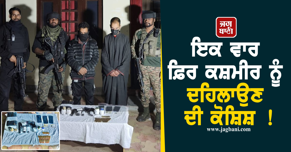 ਇਕ ਵਾਰ ਫ਼ਿਰ ਕਸ਼ਮੀਰ ਨੂੰ ਦਹਿਲਾਉਣ ਦੀ ਕੋਸ਼ਿਸ਼ ! ਹੈਂਡ ਗ੍ਰਨੇਡ ਤੇ ਹਥਿਆਰਾਂ ਸਣੇ 2 ਗ੍ਰਿਫ਼ਤਾਰ